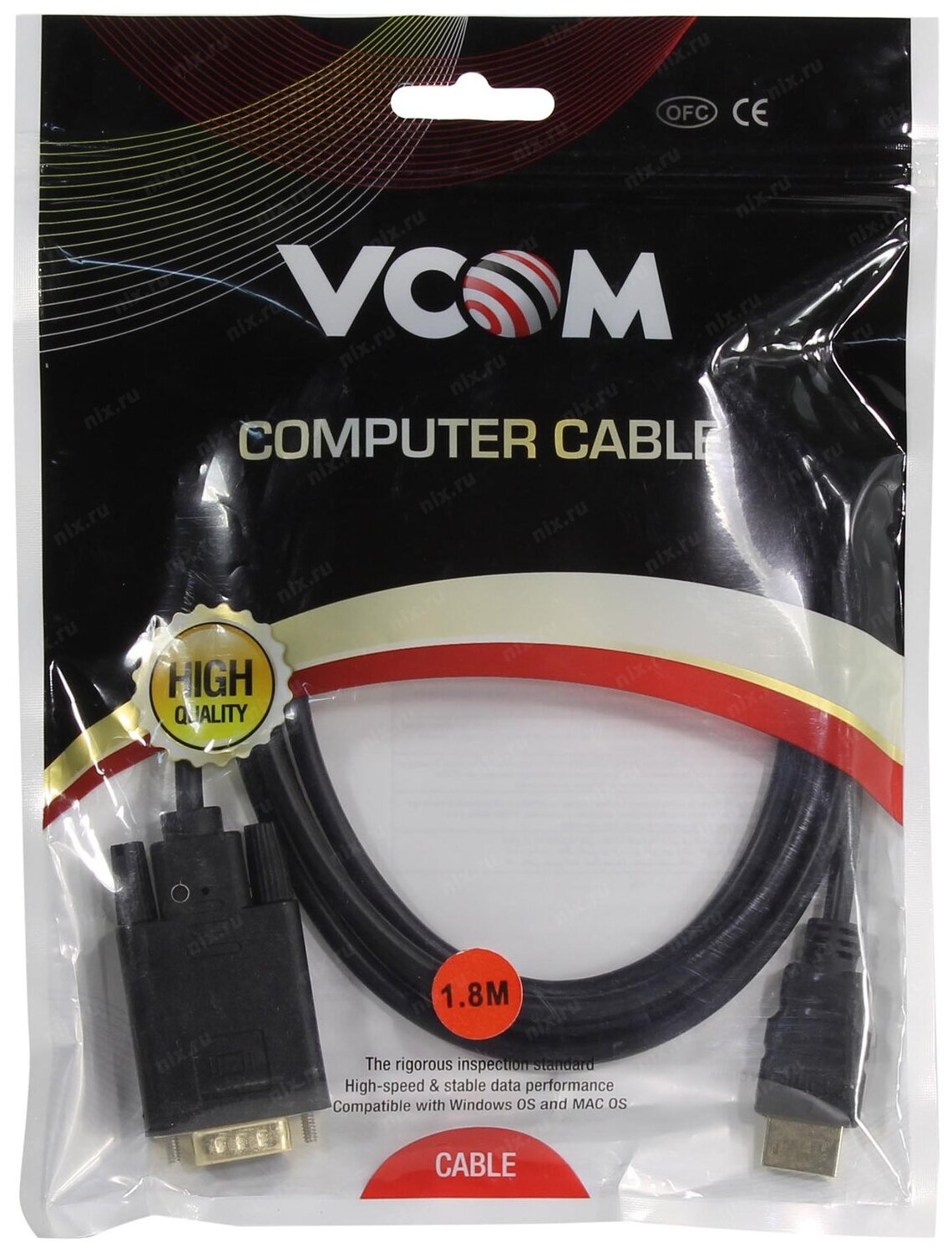 Кабель-переходник сигнальный HDMI-VGA 1.8m CG596-1.8M Vcom HDMI (M) - VGA (M), 1.8м (CG596-1.8M)