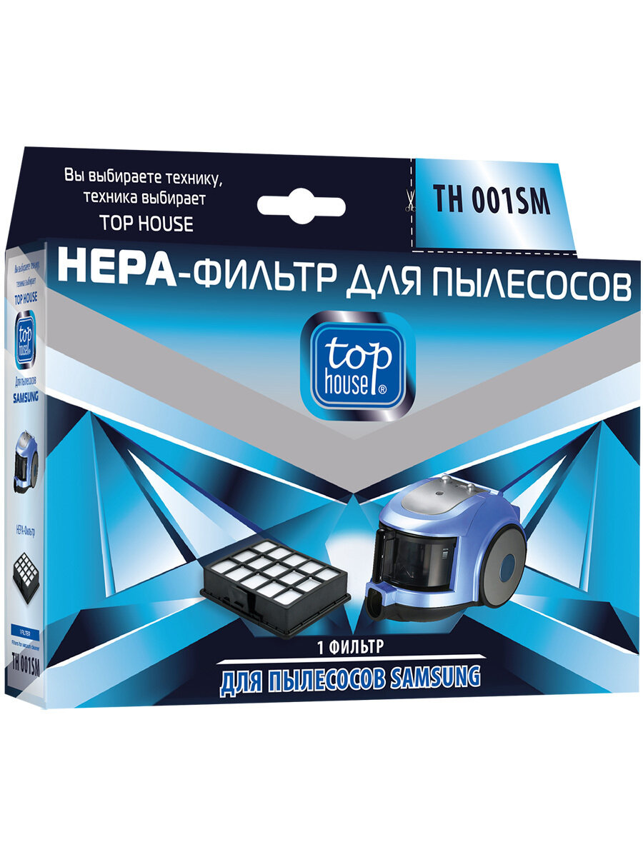 Top House HEPA-фильтр для пылесосов Samsung. HЕРА-фильтр Top House изготовлен в Германии из специального материала. Высокая степень фильтрации НЕРА-фильтра позволяет очистить воздух от бактерий, пыльцы растений, спор плесени и пылевых клещей. Размер отфильтрованных частиц 0,0003 мм, что в 233 раза тоньше человеческого волоса. Рекомендуется использовать HEPA-фильтр для пылесоса людям, чувствительным к домашней пыли или страдающим аллергией, а также, если в доме есть маленькие дети.