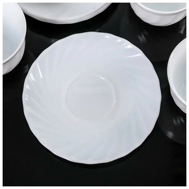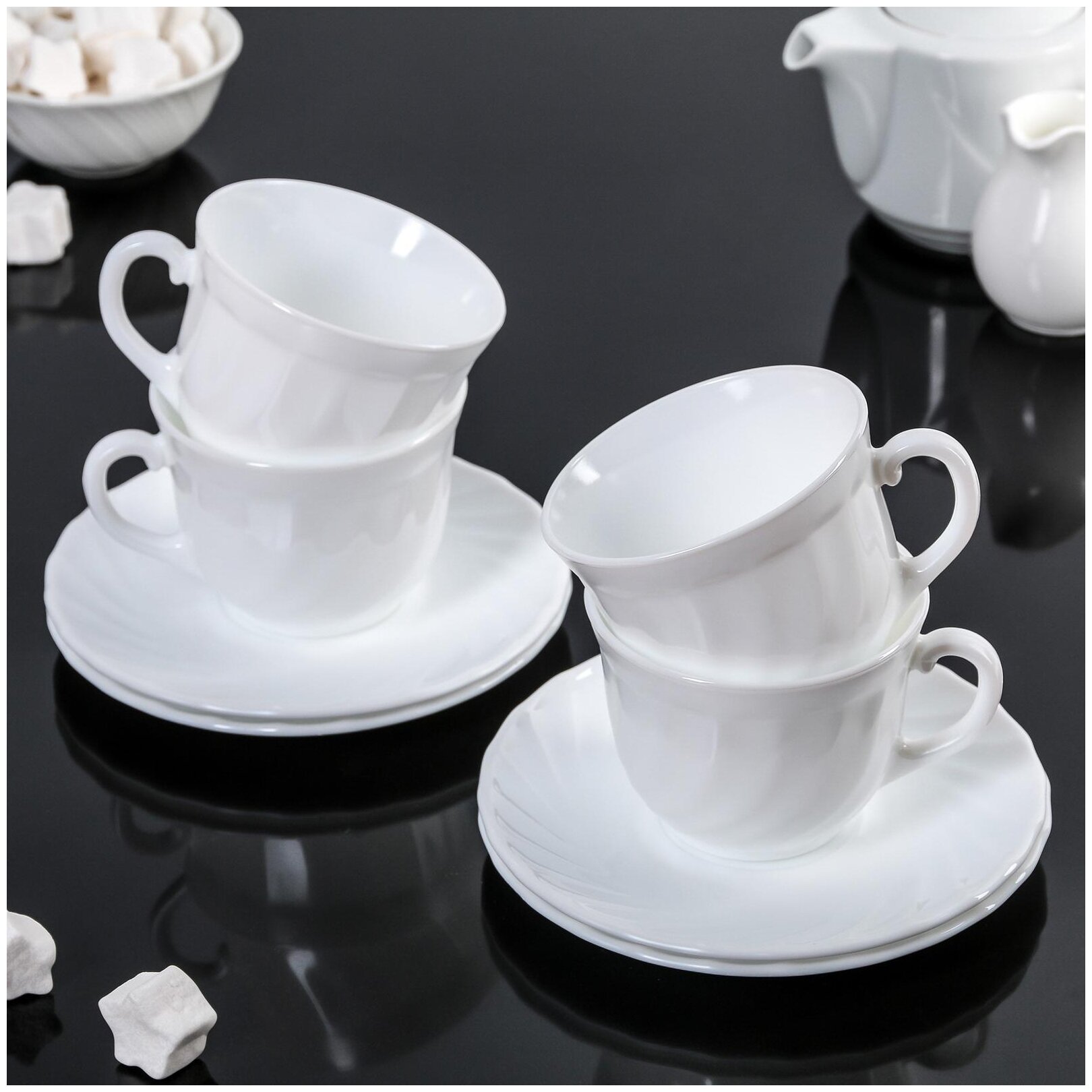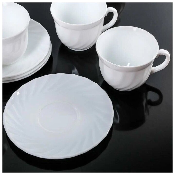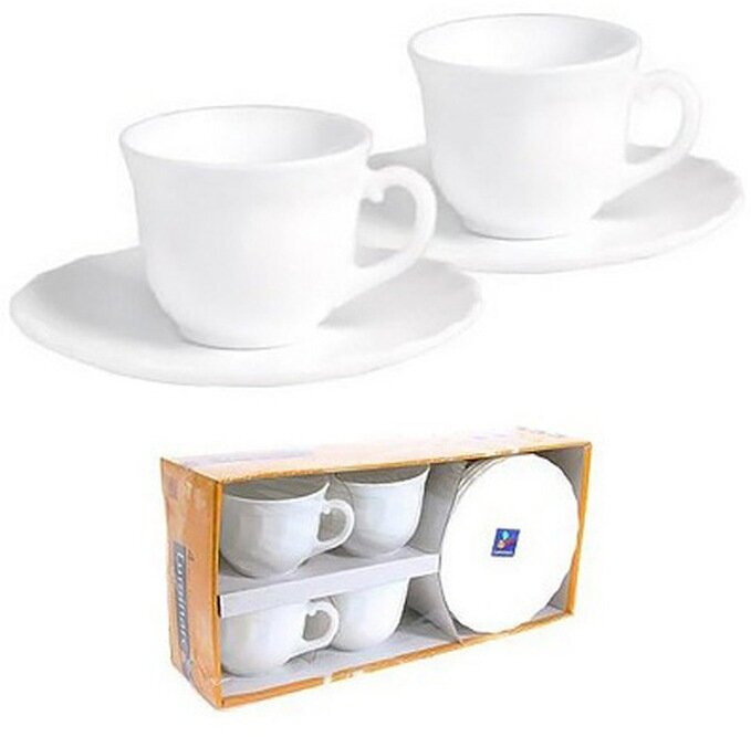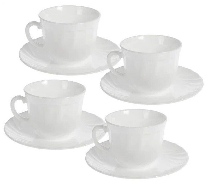Чайный набор 8 предметов ''Трианон'' классический белый набор из плотного качественного стекла. Удобные чашки с блюдцами станут универсальным средством при сервировке стола в повседневной жизни, а также при торжественных событиях. Все стекло ''Luminarc'' проходит процедуру уплотнения, благодаря чему менее подвержено механическим повреждениям. Можно мыть в посудомоечной машине, использовать в СВЧ-печи.