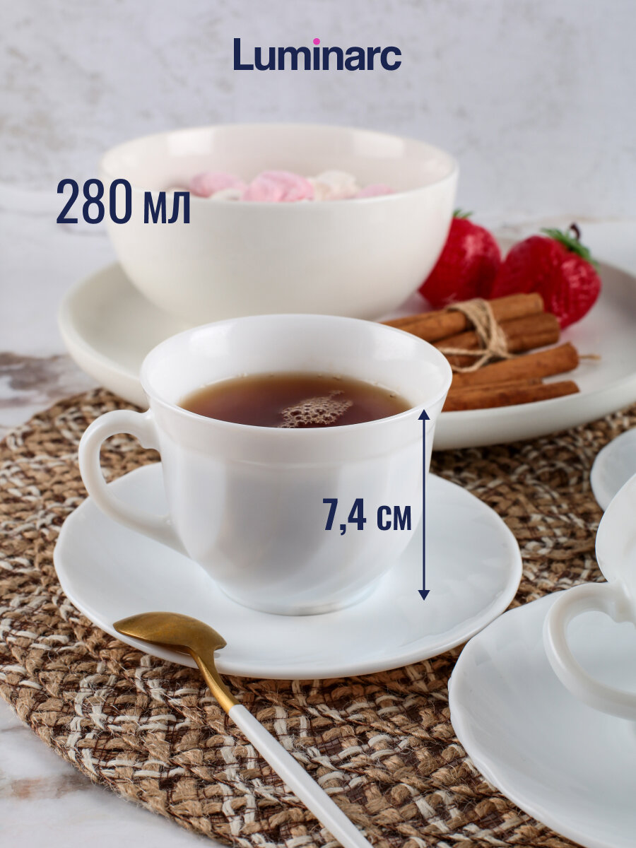 Простой и лаконичный дизайн чайного сервиза Люминарк Трианон прекрасно сочетается с любым интерьером и стилем сервировки, а чашки увеличенного объёма позволят подольше насладиться любимым напитком.