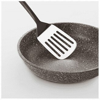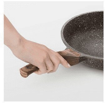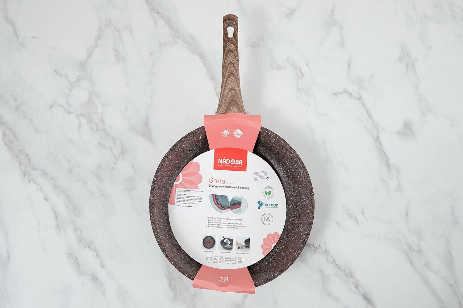 Посуда серии Greta изготовлена из литого алюминия со специальным 5-слойным антипригарным покрытием Pfluon на основе структуры гранита. Покрытие нанесено внутри и снаружи изделия. Оно не содержит свинец, кадмий и других вредных веществ и совершенно безопасно. Оно настолько прочное, что позволяет использовать при приготовлении пищи неострые металлические кухонные инструменты. Корпус из литого алюминия обеспечивает устойчивость на плите, плотное прилегание и равномерный нагрев. Сковорода не деформируется от частого использования и нагревания. Ручка не нагревается, а специальное покрытие "софт-тач" предотвращает её выскальзывание из рук.