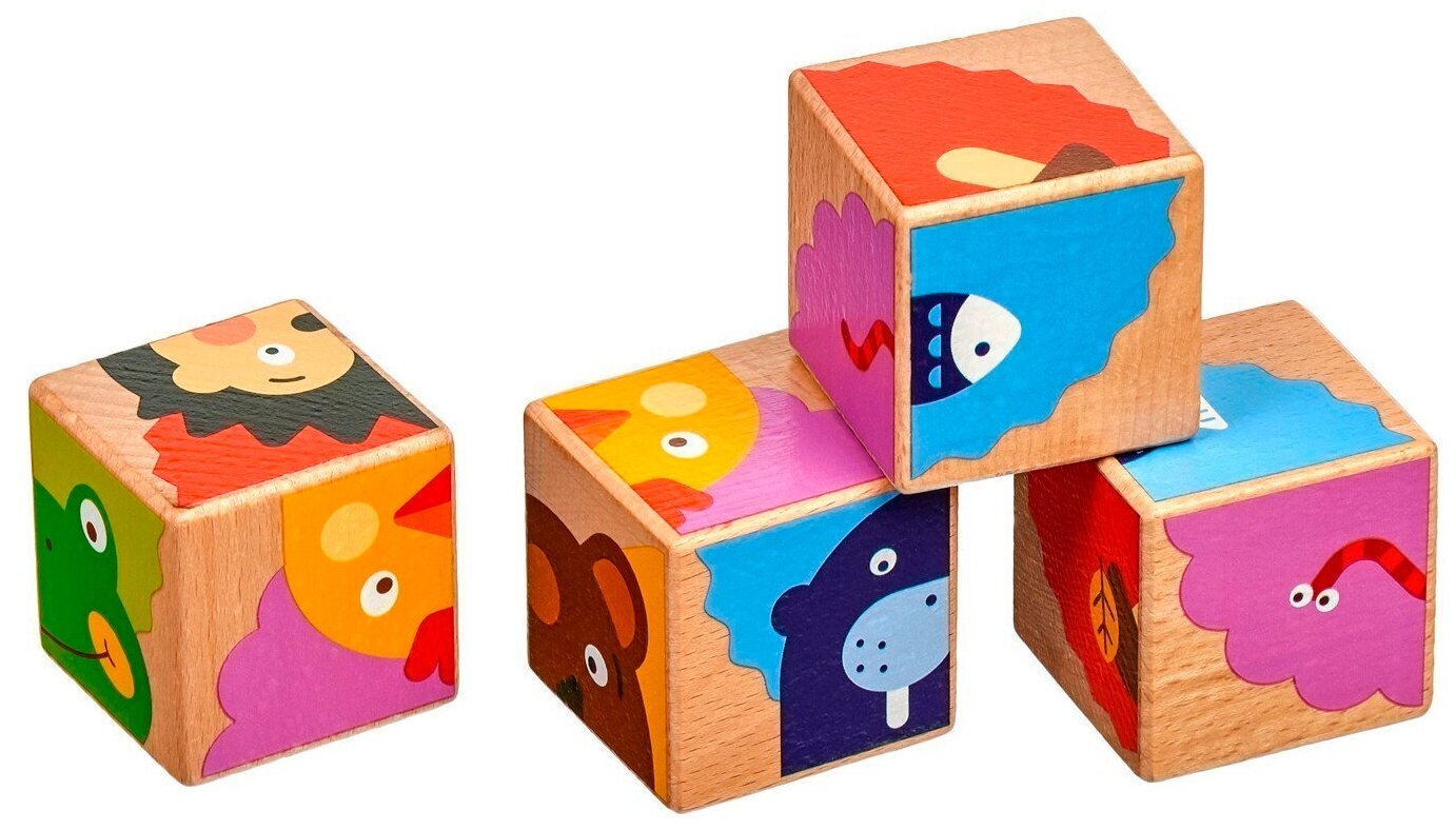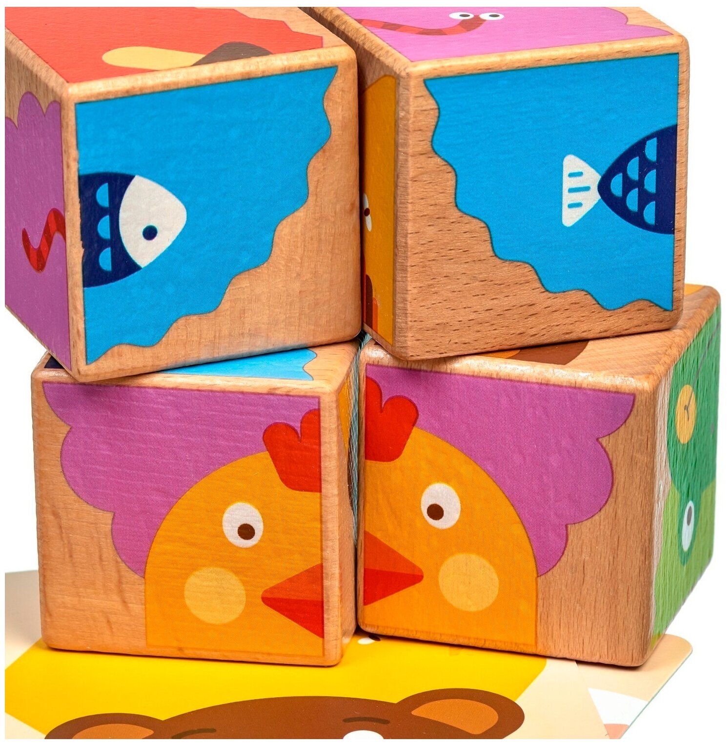 Набор кубиков подарит ребенку возможность собрать изображения сразу нескольких животных. Красивые картинки со зверюшками не являются наклейками, а нарисованы прямо на дереве. Кубики — древняя детская забава, предназначенная для раннего развития ребенка.