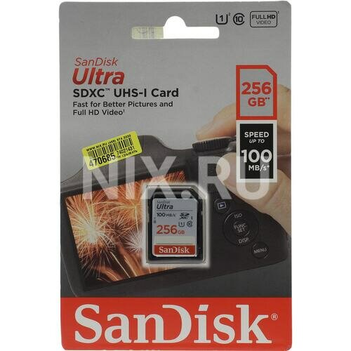 Карта памяти SDXC UHS-I U1 SANDISK Ultra 256 ГБ 100 МБ/с Class 10 1 шт. SDSDUNR-256G-GN6IN