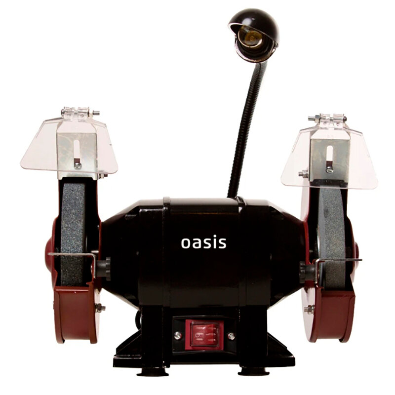Заточной станок Oasis предназначен для заточки и сухой шлифовки металлических заготовок, режущего инструмента и металлических поверхностей в бытовых условиях.Точильный станок оснащается электроприводом, за счёт чего обеспечивается высокая скорость вращения абразивной оснастки (2950 об/мин). Точило электрическое применяется для заточки ножей, стамесок, топоров, сверл, зубил, ножей, резцов токарного станка и т. д. Надёжный асинхронный двигатель инструмента обеспечивает его высокую работоспособность.Станок для заточки имеет подсветку рабочего места. Подсветка в виде лампы на гибкой ножке – очень полезная опция, когда нужно внимательно следить за зоной касания затачиваемого инструмента и диска. Точильный станок для ножей имеет защитные прозрачные экраны, которые обеспечивают безопасность его использования. Также у заточного станка Oasis есть возможность крепления к опорной поверхности и устойчивые демпферные ножки, что делает работу на нём более удобной и безопасной.Входящие в комплект станка 2 круга разной зернистости (их зернистость 36 и 60) позволяют выполнять заточку разного режущего инструмента: от ножей и сверл до топоров. Пылезащищенный выключатель и износостойкий сетевой кабель обеспечат более продолжительный срок службы заточного станка Oasis.