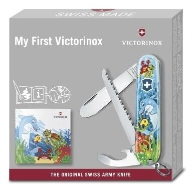 My First Victorinox - швейцарский карманный нож, созданный специально для детей. Особенностью ножа My First Victorinox является закруглённый кончик лезвия, что делает нож максимально безопасным. В комплекте книжка - раскраска.