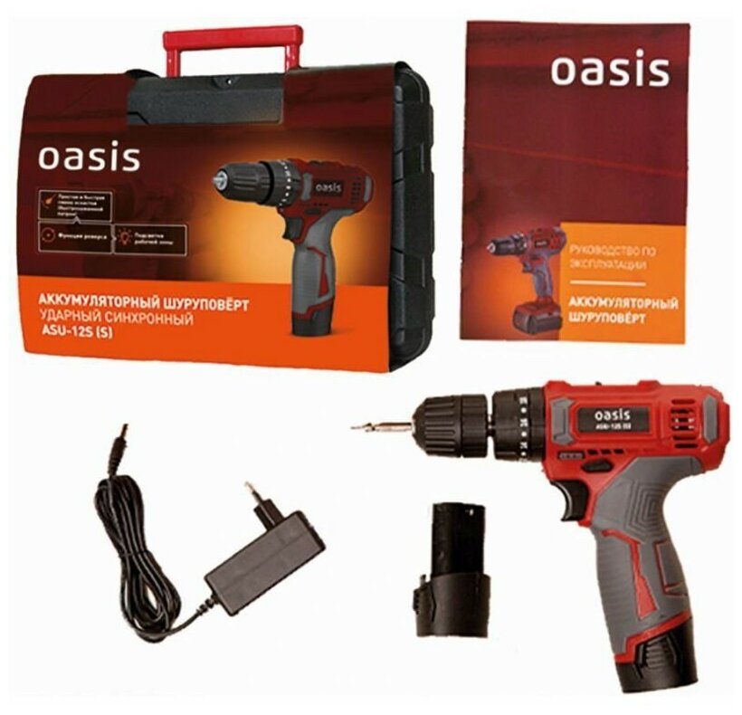 Сервис сравнения цен СкидкаГИД предлагает сравнить цены на товар «Дрель-шуруповерт OASIS 2Ач с двумя аккумуляторами ASU-12S (S)»