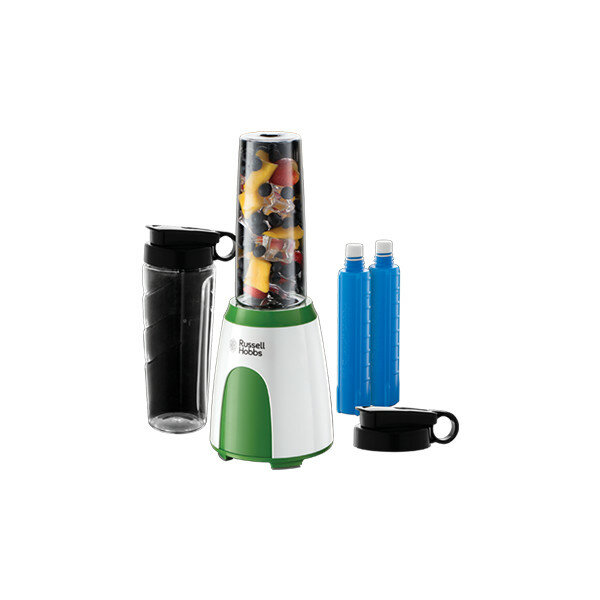 Ничто не сравнится с чудесным ароматом свежих продуктов и наслаждением от приготовления вкусного и полезного для вашего здоровья блюда.С помощью кухонной техники от Rusell Hobbs вы сможете измельчить, порубить, покрошить и смешать различные продукты для создания аппетитных блюд.Благодаря удобству использования и простоте очистки эти современные устройства для кухни позволят вам добиться непревзойденных результатов.Блендеры Rusell Hobbs станут вашими помощниками в течение всего года: как для приготовления горячих супов, так и для освежающих смузи летом.Блендер Explore Mix & Go Cool от Russell Hobbs для приготовления смузи с собой - незаменимый прибор для вашего бодрого утра. Он совмещает в себе блендер и съемные емкости, так что вам нужно лишь поместить ингредиенты в герметичную емкость, нажать на кнопку, все смешать и просто взять емкость со смузи с собой.Этот компактный блендер имеет в комплекте 2 бутылочки объемом по 600 мл, которые подходят в стандартные подстаканники в машине, так что очень удобно взять приготовленный смузи с собой прямо в той же бутылочке, в которой он готовился.Производители придумали, как сохранить освежающий напиток прохладным на длительное время. Новым полезным акссесуаром блендера являются аккумулятора холода. Поместите их в емкости для смузи, и ваш коктейль будет оставаться холодным дольше.Фруктовые или овощные смузи - это очень полезный, очень простой и быстрый способ перекусить. Смешайте вкусные и освежающие смузи или соки, затем просто отсоедините бутылочку и возьмите с собой в дорогу, на работу или в спортивный зал. Это просто! 2 портативные бутылочкиБлендер Explore Mix and Go Cool включает две портативные бутылочки (600 мл каждая) с крышками, которые безопасны для посудомоечной машины. Они также подходят в стандартный подстаканник в машине.Автостарт при нажатии. Нет необходимости нажимать какие-либо кнопки. Просто зафиксируйте портативную емкость на базе, нажмите и блендер Explore Mix & Go Cool автоматически начнет процесс смешивания.