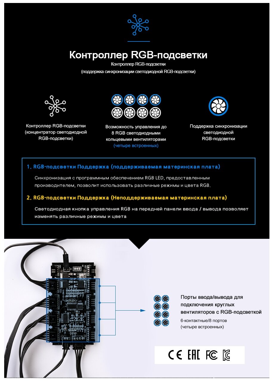 | Подсветка вентиляторов | 4xRGB |