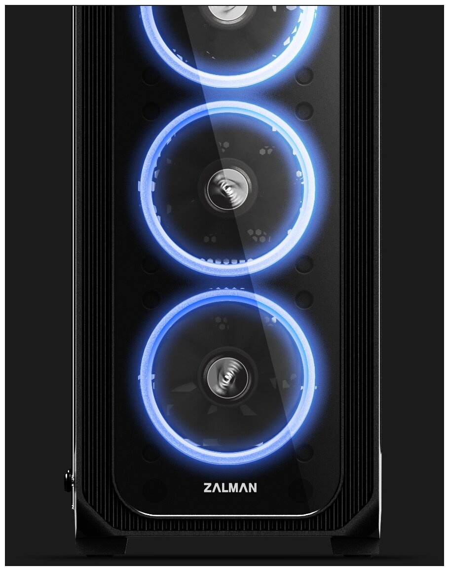 Компьютерный корпус Zalman оснащен 4-мя направляемыми вентиляторами, тремя на передней панели и одним на задней. Благодаря вентиляторам осуществляется охлаждение игровой системы, что обеспечивает безопасную работу устройства.