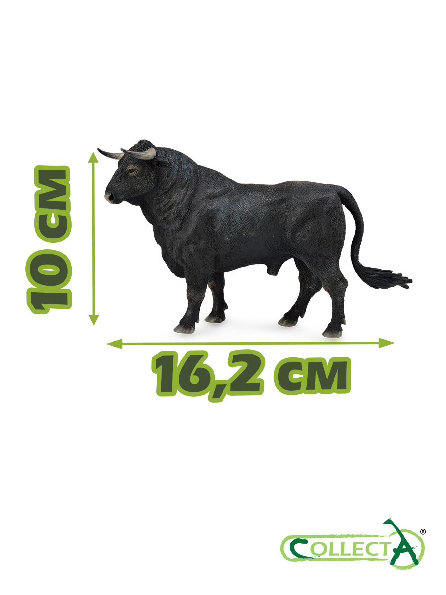 Фигурка испанского быка пригодится для разыгрывания сюжетов о корриде или рассказов о жителях ферм. Игрушка выполнена очень детализировано, можно разглядеть форму копыт, рогов, изучить форму тела и глаза животного.Особенности:1. Фигурка выполнена из цельного пластика очень приятного на ощупь. Игрушка не будет распадаться на части, её невозможно разобрать.2. Бык выполнен с невероятной реалистичностью, вы сможете разглядеть даже фактуру его «шерсти».3. Размер L позволит более подробно изучить строение тела быка и его окрас. Удобно разыгрывать с фигуркой различные сюжеты.4. Испанский бык будет достойно смотреться в семейной коллекции.5. Игры с фигуркой развивают фантазию, воображение и подогревают интерес к биологии.