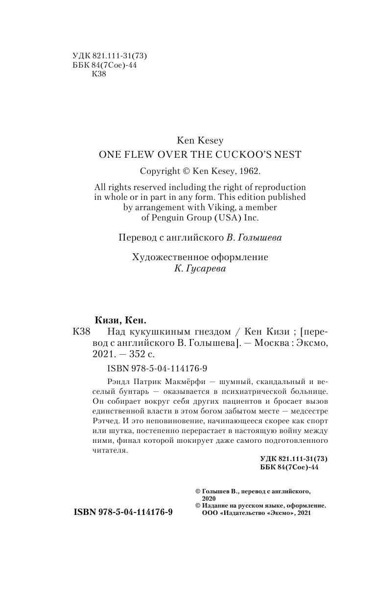 Книга: Над кукушкиным гнездом (Кен Кизи); Like Book, Редакция 1, 2020