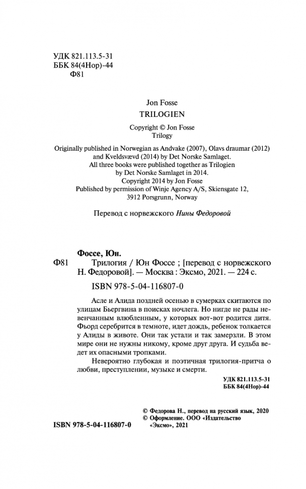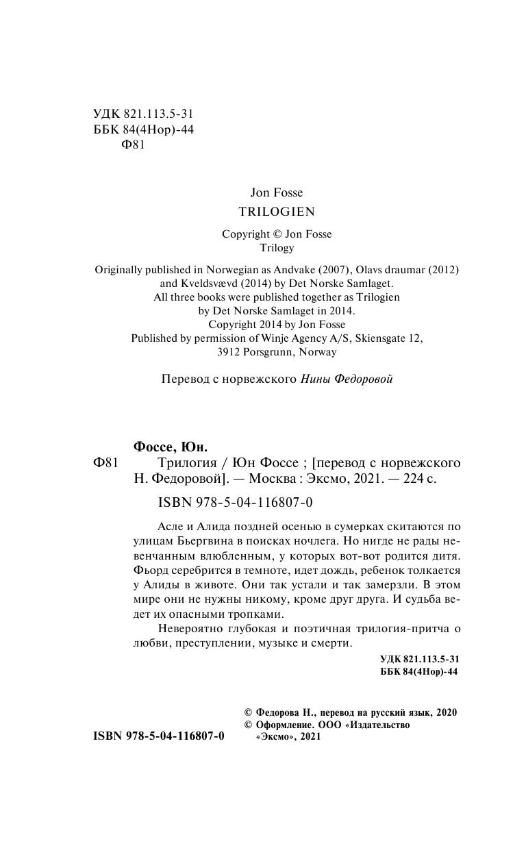 Книга: Трилогия (Юн Фоссе); Эксмо, Inspiria, Редакция 1, 2023