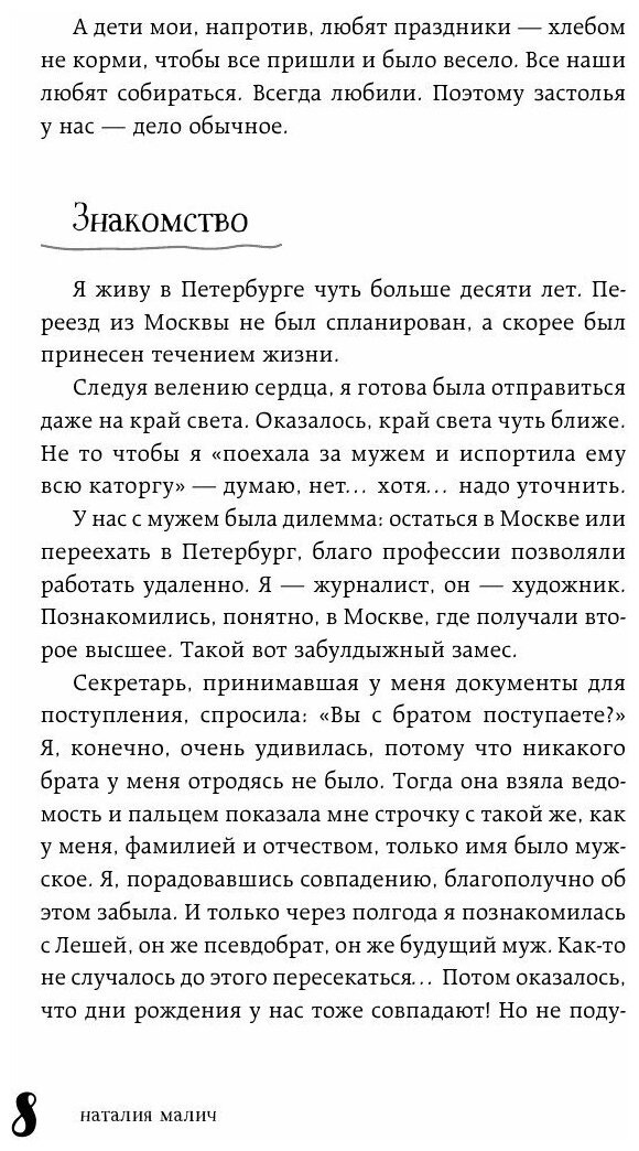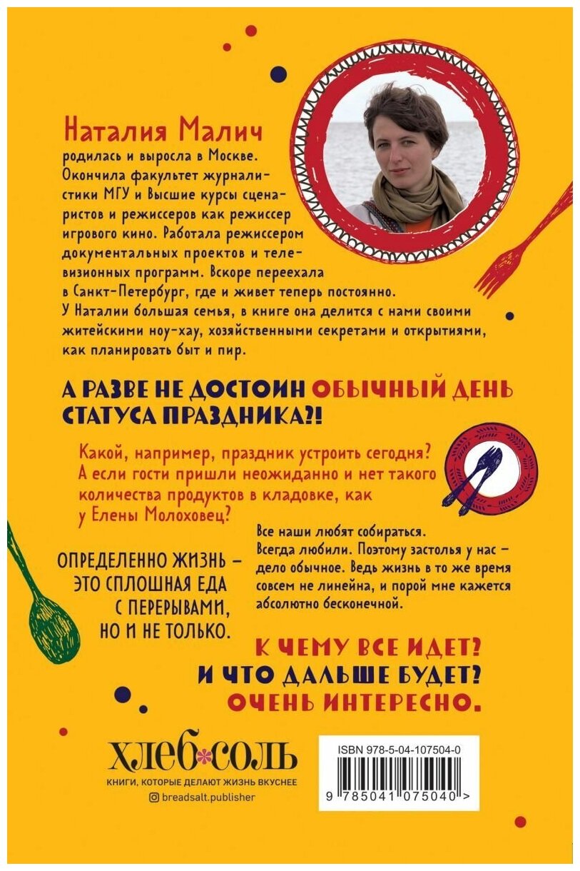 Чего ожидает девушка, когда собирается выйти замуж? Казалось бы, тихого уютного семейного гнездышка. Каково же было удивление Наталии Малич, когда ее замужество оказалось погружением в огромную неугомонную семью, обожающую застолья и праздники всех сортов. Одних дней рождения на все лето! Как в этой ситуации не превратить свою жизнь в бесконечное стояние у плиты и научиться наслаждаться праздниками? Как и чем вкусно и легко накормить толпу любимых людей? Как усадить разные поколения за один стол и не сойти с ума?