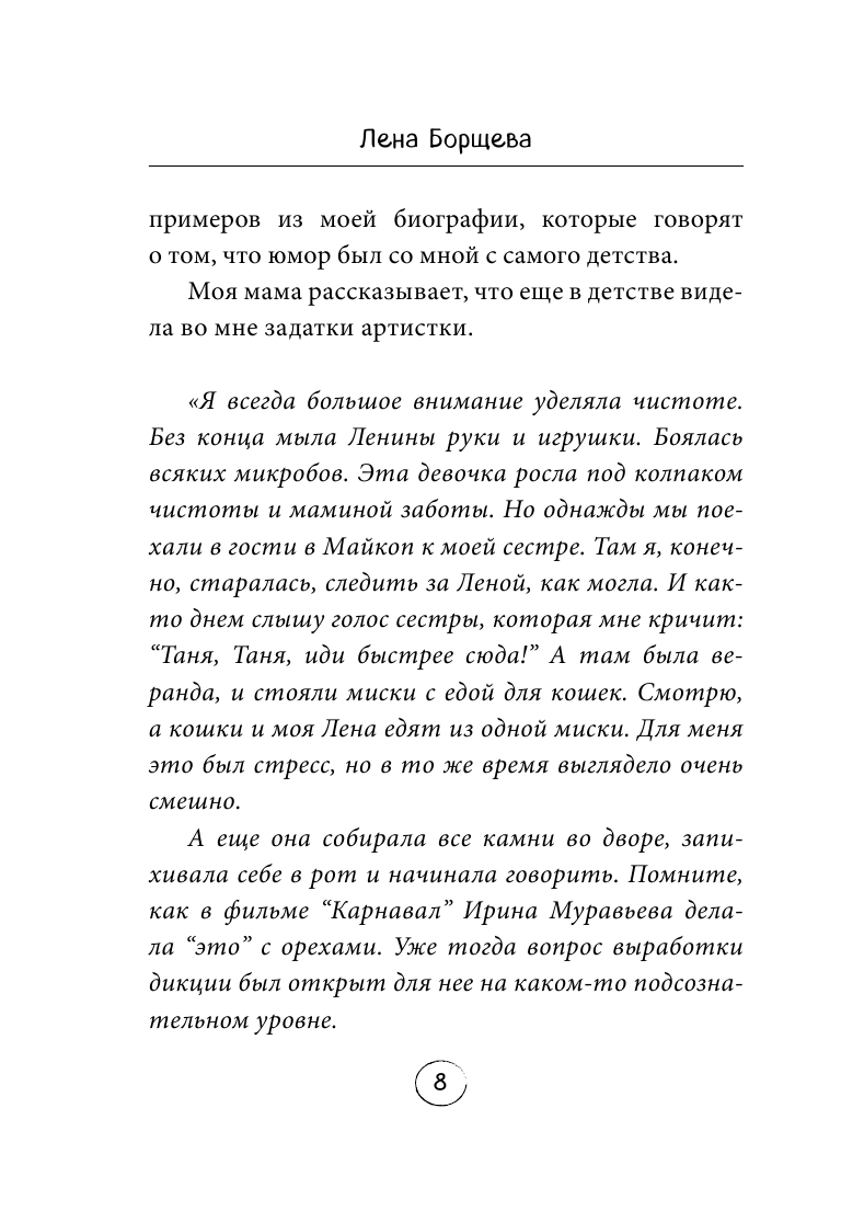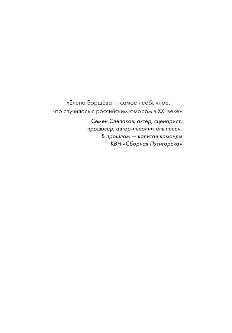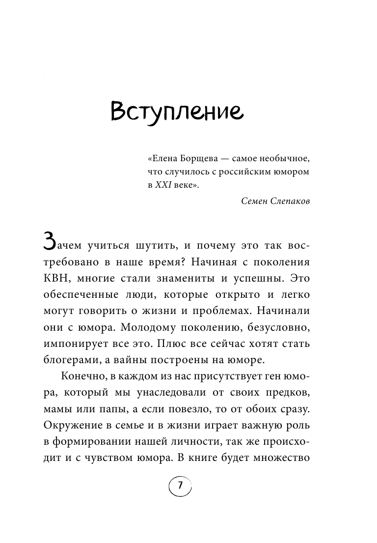 В книге использованы разнообразные приемы и упражнения для развития юмора. Рассказано множество примеров из личного опыта и жизни Елены Борщевой. Рекомендуется к прочтению для повышения градуса настроения.