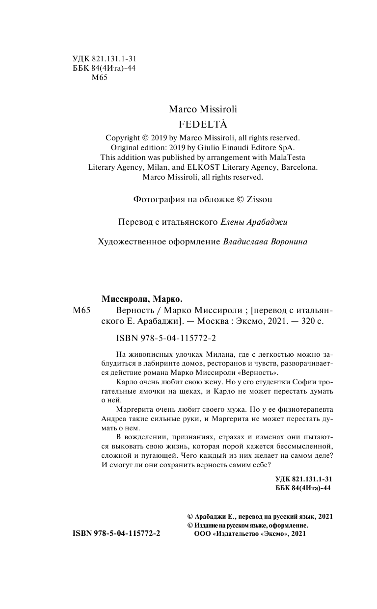 Книга: Верность (Марко Миссироли); Эксмо, Редакция 1, 2021