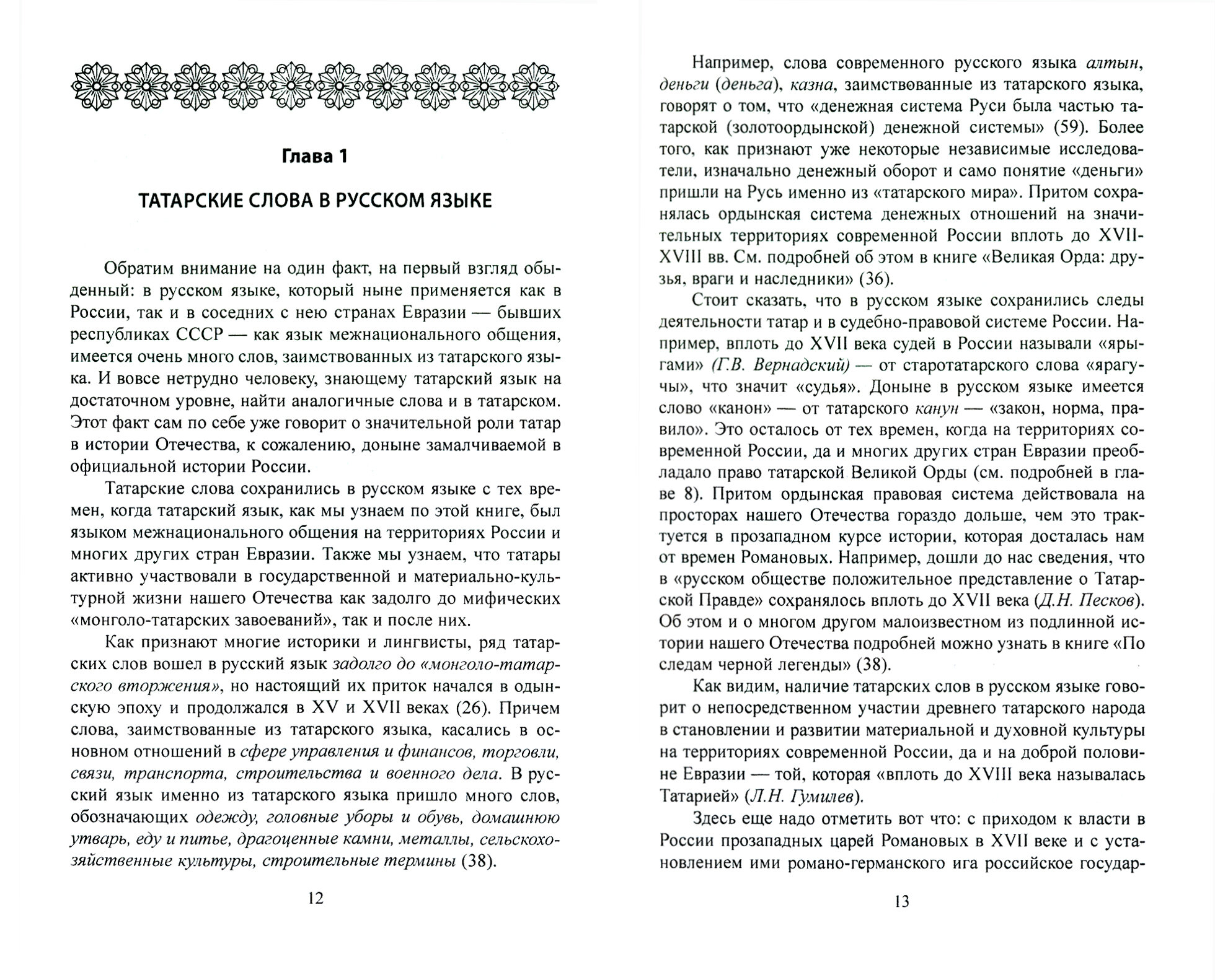 Содержание этой небольшой, но довольно емкой книги имеет отношение ко всем нашим соотечественникам. И вот почему. В 1990 г., за два года до своей кончины, выдающийся ученый, историк и этнолог Л. Н. Гумилев сказал: «Вымысел, далеко не безобидный как в отношении русских, так и татар, должен быть разоблачен и развеян. Почему человек должен стыдиться, как чего-то позорного, этнонима, окутанного легендами? Знайте, это – гордое имя! Ради истины, а не ради псевдонаучной, политической или какой-то другой конъюнктуры я, русский человек, всю жизнь защищаю татар от клеветы. Они – в нашей крови, в нашей истории, в нашем языке, в нашем мироощущении… какими бы ни были реальные различия с русскими, татары – это народ не вне, а внутри нас»