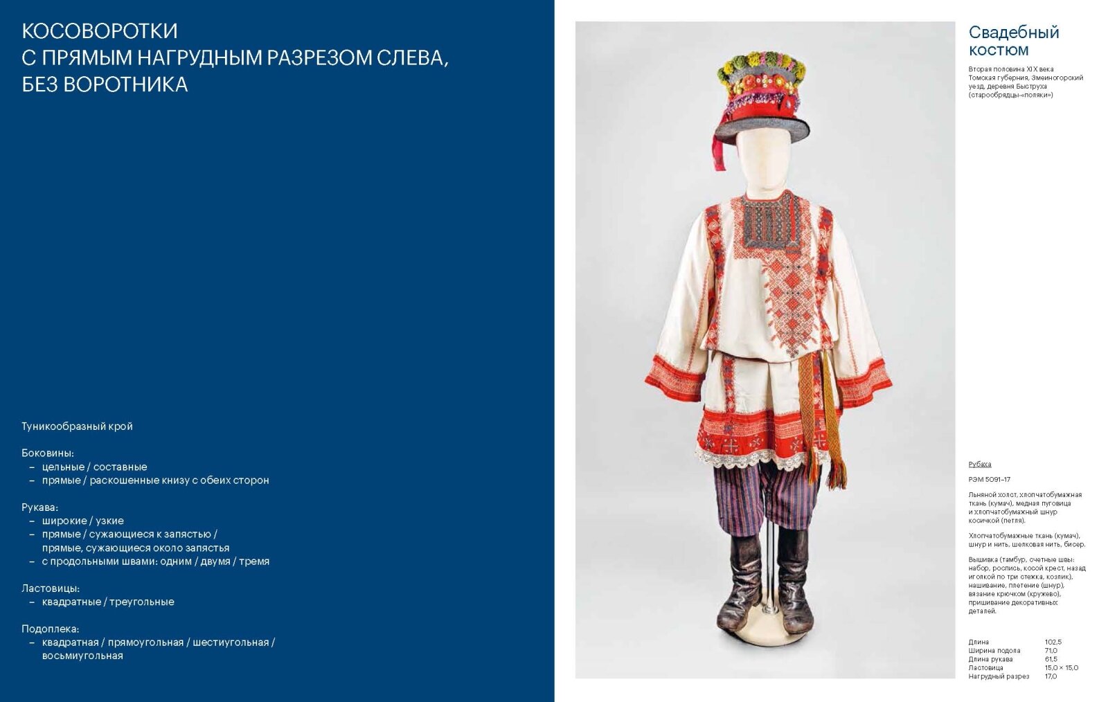 Исследовательской и иллюстративной базой издания является собрание Российского этнографического музея (Санкт-Петербург). В русском фонде музея хранится около пятисот мужских рубах, значительная часть которых — это редкие старинные предметы. Также в книге представлены предметы из фондов Государственного Эрмитажа, Астраханского, Богородского, Мордовского, Нижнетагильского, Смоленского и Тамбовского музеев.