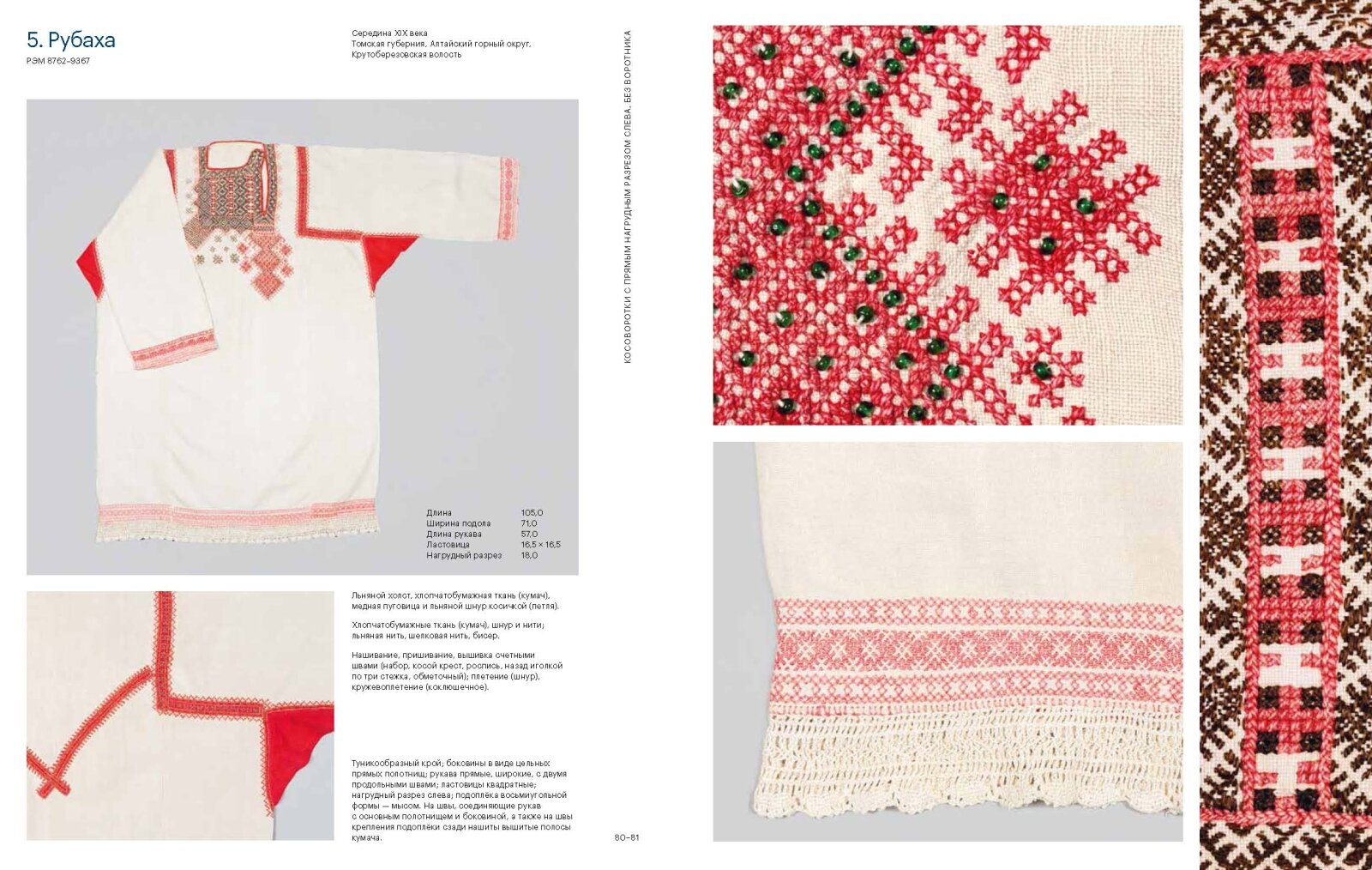 Книга содержит большой практический раздел, включающий схемы кроя и вышивки трех рубах (в том числе на отдельном листе-вкладыше).