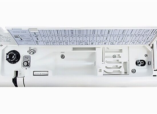 Janome - универсальная швейная машина. Она имеет оптимальный набор строчек, среди которых несколько оверлочных и довольно много строчек для работы с трикотажем, а также умеет выметывать петлю в автоматическом режиме. Если вы откроете верхнюю крышку, то увидите инструкцию, на которой указано какую длину и ширину стежка использовать для выполнения какой-либо швейной операции, а так же какую установить лапку и натяжение нити.