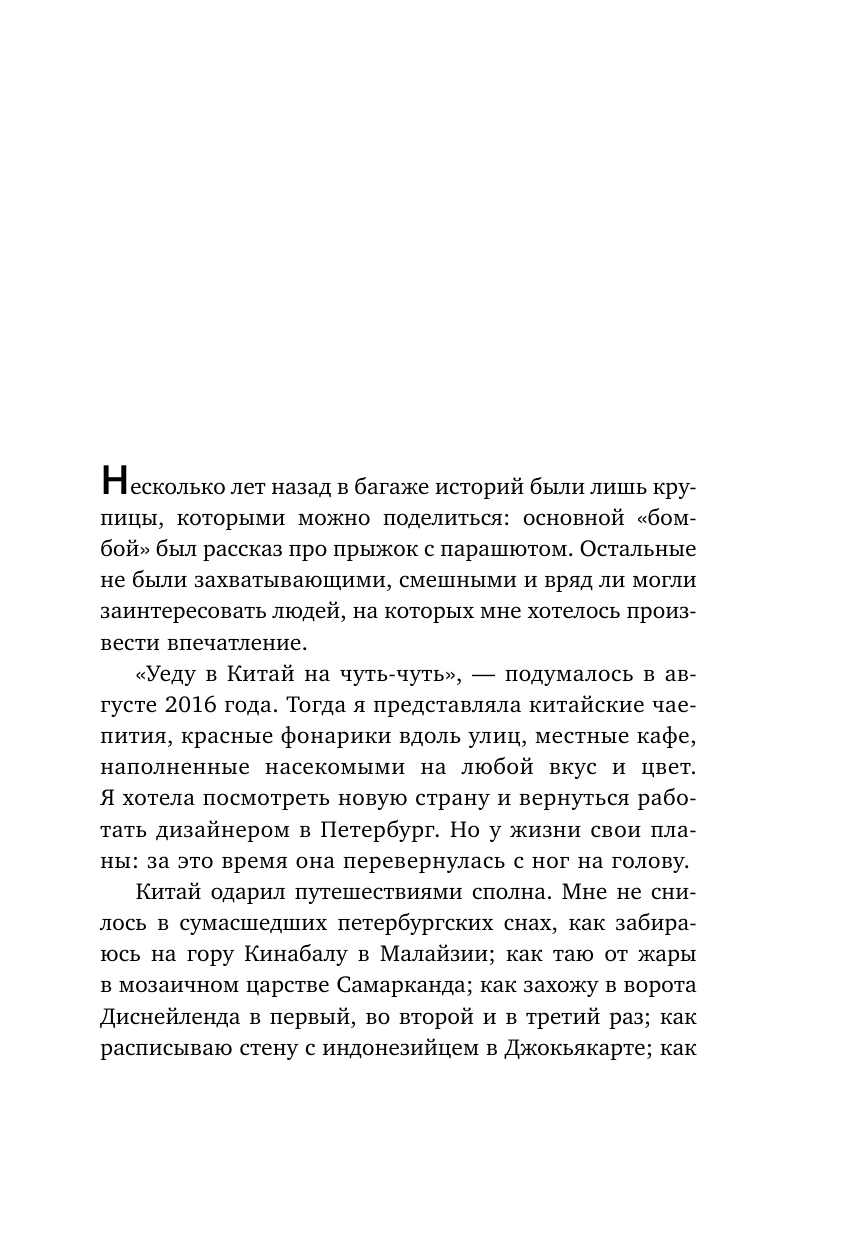 Перед вами коллекция путевых заметок, которые автор писала во время жизни в Китае и путешествий по странам в одиночку.