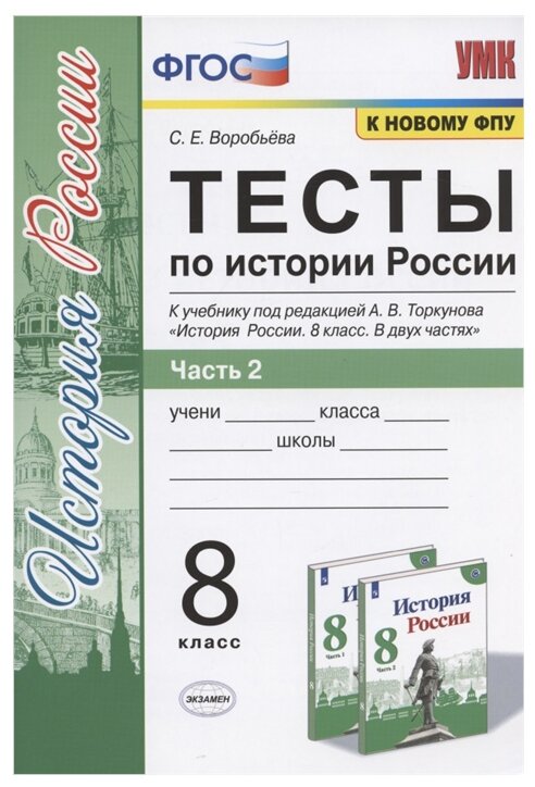 Тесты по Истории России 8 класс Ч 2 Торкунов ФГОС (к новому ФПУ) (Воробьева Светлана Евгеньевна); Экзамен Издательство, 2020