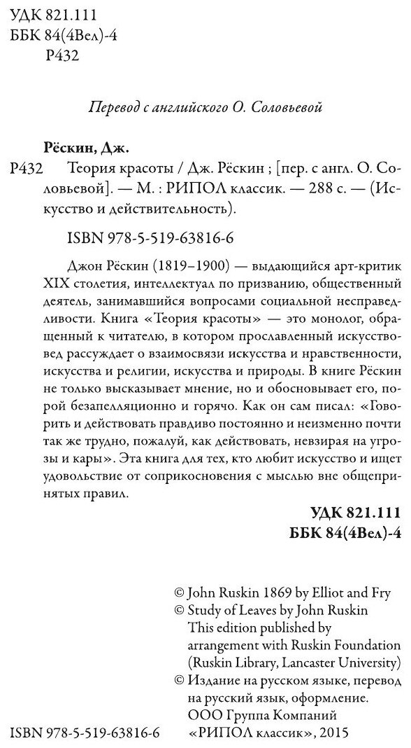 Обзор на книгу "Теория красоты" Джона Рескина.