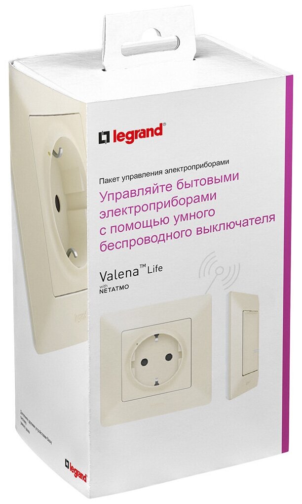 В комплект Legrand VLN-l входит беспроводной выключатель и розетка, которыми можно управлять дистанционно, скачав на смартфон специальное приложение. Устройства совместимы со стартовым набором «умного дома», устанавливают соединение между собой сразу после монтажа и не нуждаются в дополнительной настройке. Можно регулировать уровень освещенности, включать/выключать электроприборы из любой точки мира. Приспособления поддерживают Wi-Fi. Доступны голосовые помощники, что позволяет использовать звуковые команды. Это очень удобно, если заняты руки. Программное обеспечение обновляется автоматически.