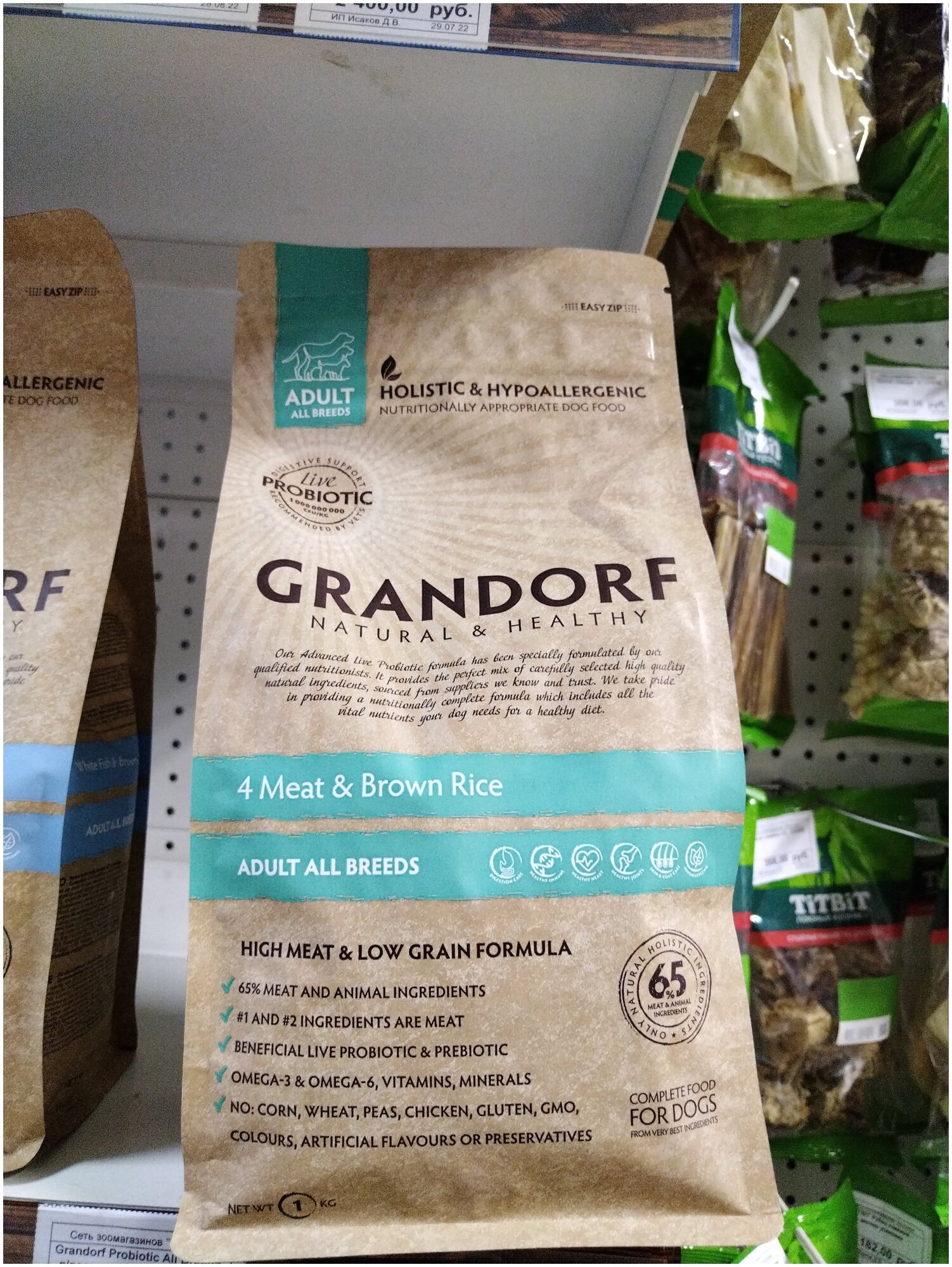 На сегодняшний день товар «Сухой корм для собак Grandorf Adult all 4 мяса с рисом 3кг Корм сухой Grandorf Четыре вида мяса с бурым рисом для взрослых собак всех пород 3 кг» можно купить с кешбеком в 1 магазине: Яндекс.Маркет