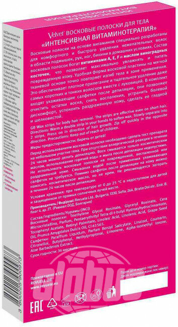 Полоски для депиляции Velvet Интенсивная витаминотерапия восковые 20шт ООО ТИМЕКС ПРО