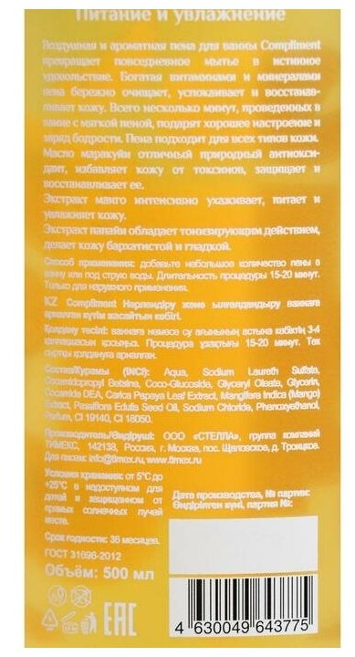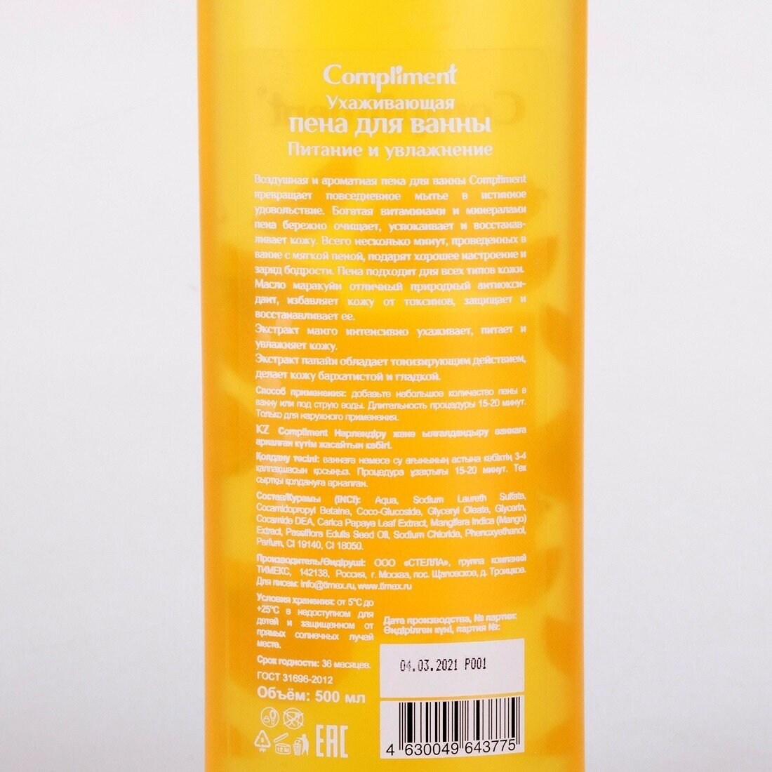 | Полное наименование | Пена для ванны Compliment Питание и увлажнение 500мл |