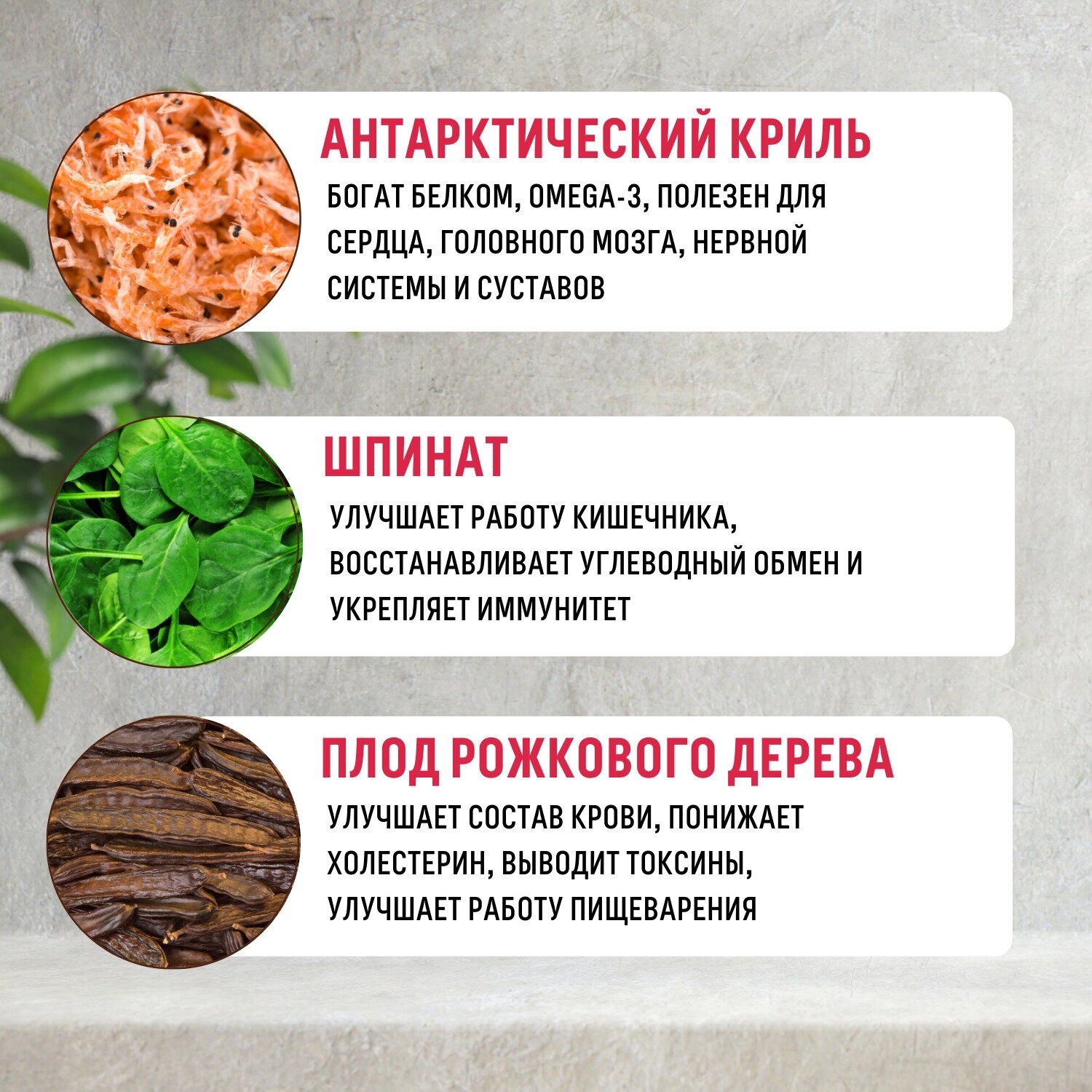 Деликатный способ приготовления сохраняет все полезные свойства и питательные вещества натуральных ингредиентов обеспечивают отличное физическое состояние питомца.