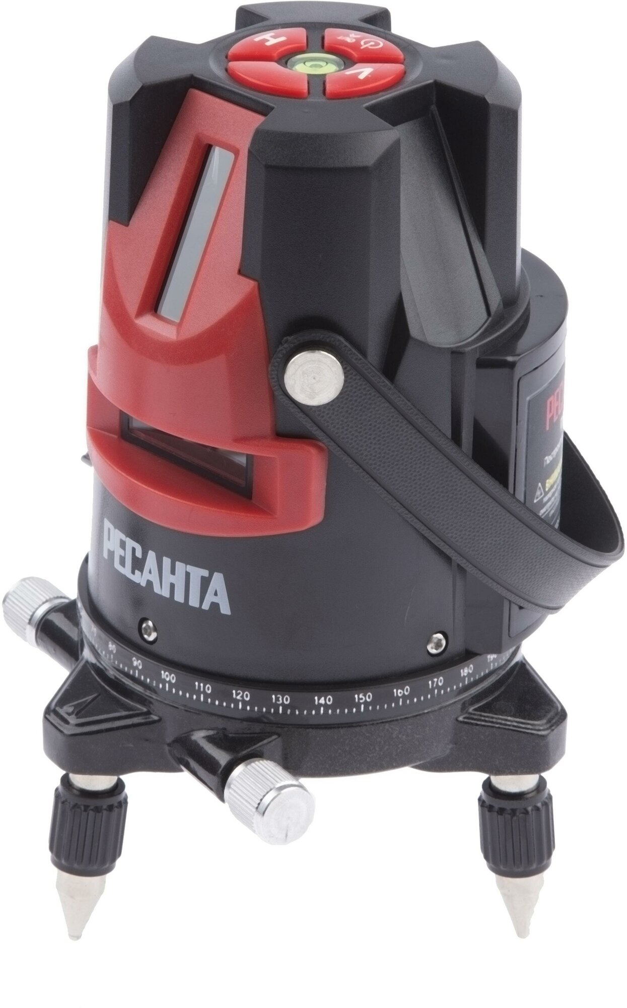 Ресанта - лазерный уровень для построения трёх линий. Лазерный построитель плоскостей проецирует видимые лазерные плоскости. Это позволяет выполнять измерительные задачи в строительстве: определение высоты, построения горизонтальной и вертикальной плоскостей. В комплект входит штатив для установки прибора.