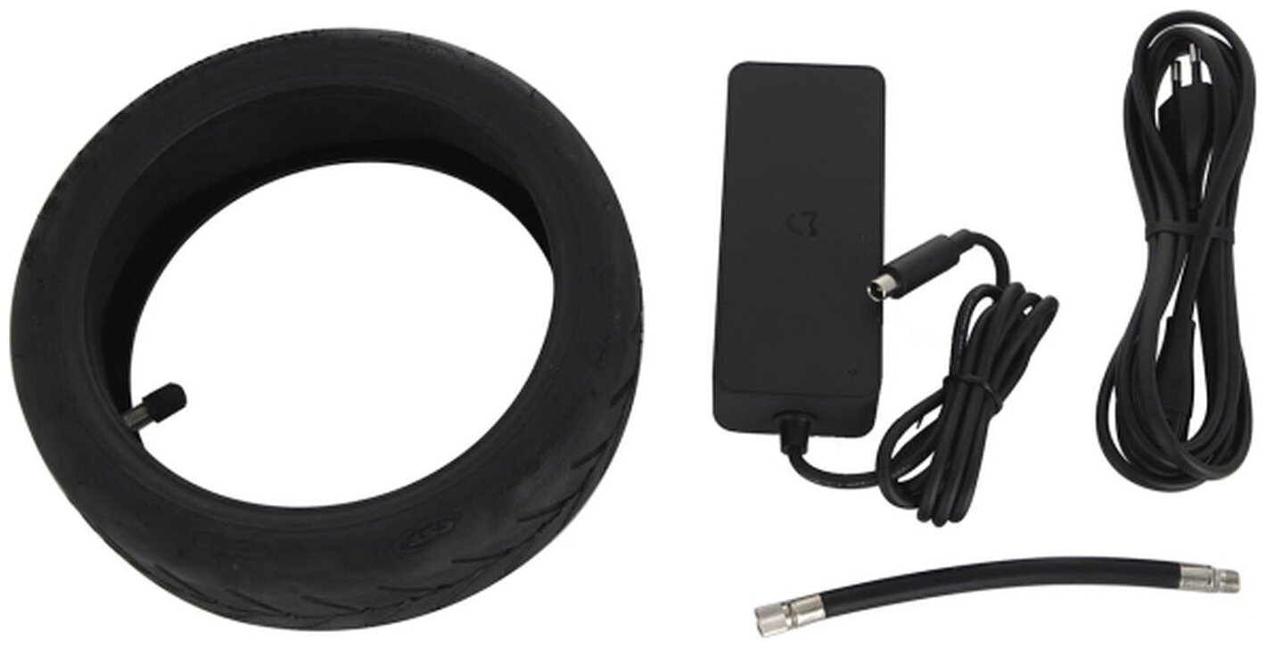 Комплект поставки | Электросамокат, покрышка, камера, адаптер питания, ключ шестигранник, винты, документация |
