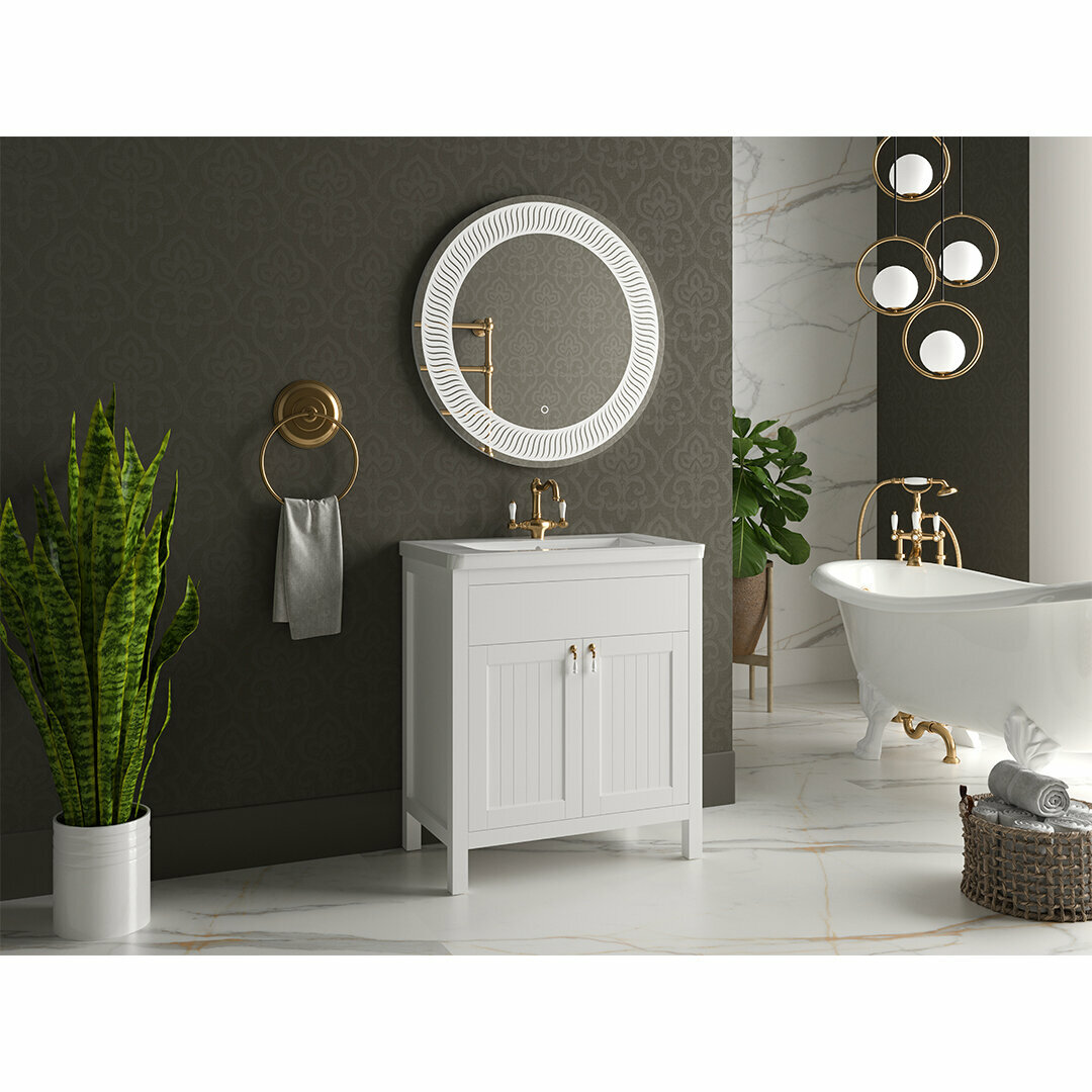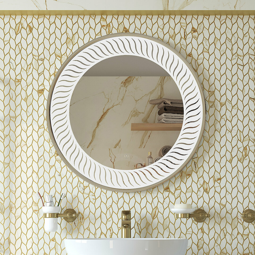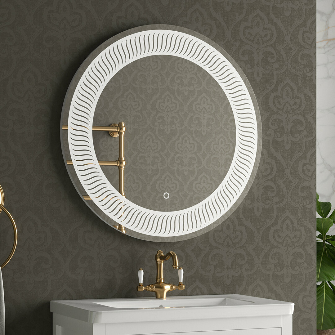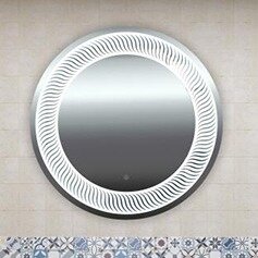 Misty Стайл - круглое интерьерное зеркало с встроенной подсветкой и сенсорным выключателем. Светящаяся область выделена элегантным белым узором, что придает модели особую привлекательность.