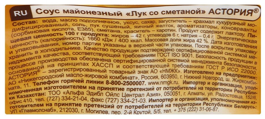 Сервис сравнения цен СкидкаГИД предлагает сравнить цены на товар «Соус майонезный "Астория" Лук со сметаной 233гр (Q0204004)»