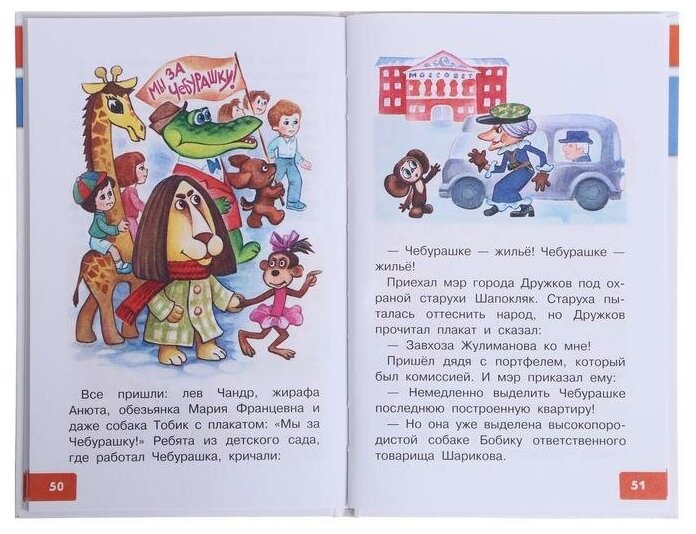 Замечательные и с детства любимые сказки про Чебурашку и Гену! Добрые красочные картинки, маленькие тексты, крупный шрифт - подойдут для чтения самым маленьким или для тех деток, кто только начинает читать самостоятельно. Удобная небольшая книжка с короткими рассказами, и по-моему, отлично продумана для детей.