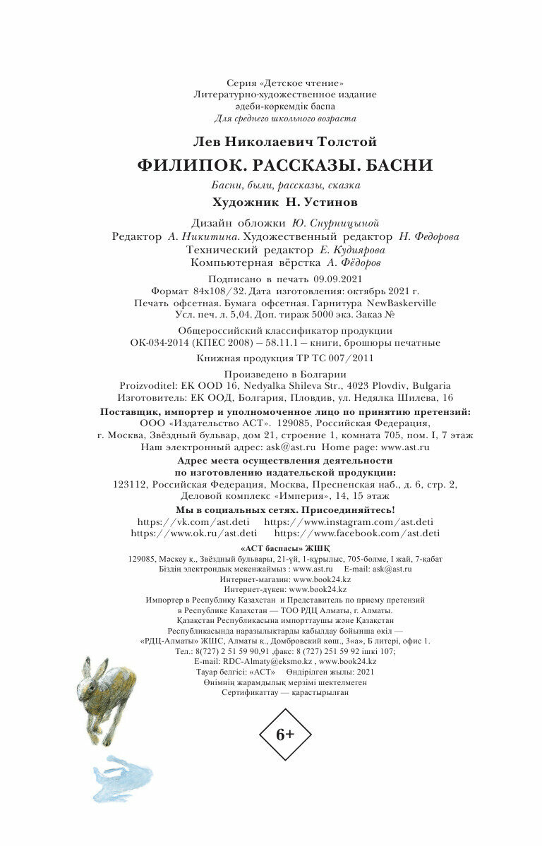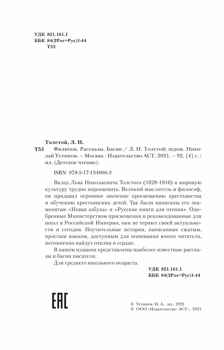 Книга: Филипок. Рассказы. Басни (Лев Толстой); Издательство АСТ, 2020