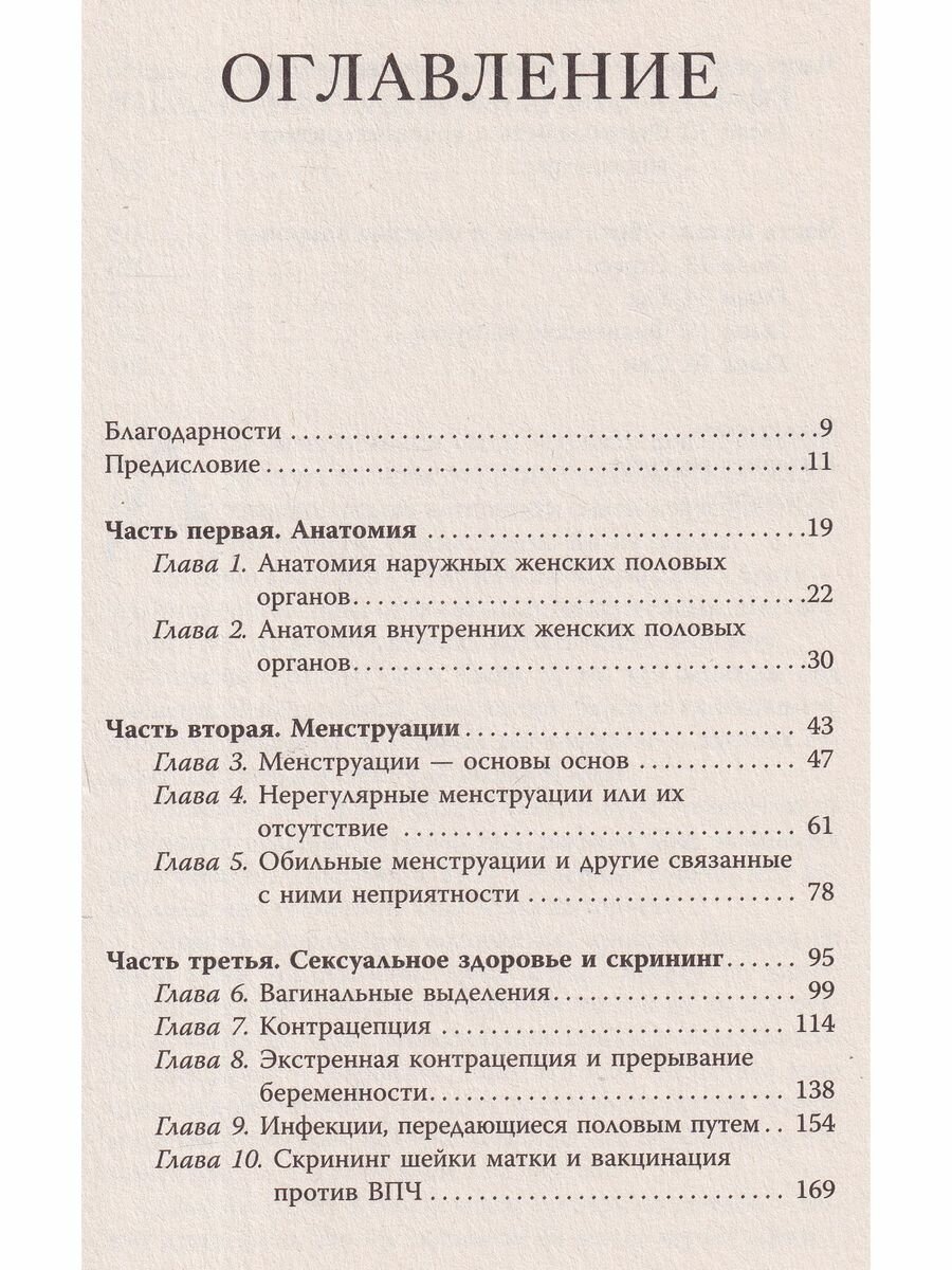 Книга действительно рассказывает об основах гинекологии, объясняет, что делать можно, нужно и нормально, а что – не стоит, но при этом нужно сохранять спокойствие. Книга именно сборник историй пациенток данного врача, что выглядит довольно интересно, потому что это напоминает сериал про врачей. На примерах пациенток она и рассматривает всевозможные случае в медицинской практике. Полезно!