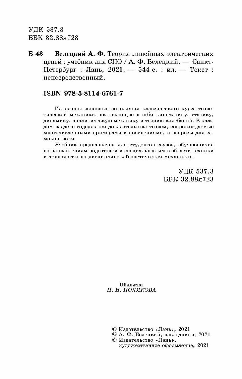 Сервис сравнения цен СкидкаГИД предлагает сравнить цены на товар «Книга: Теория линейных электрических цепей.Уч для СПО (Белецкий Александр Федорович); Лань, 2021»