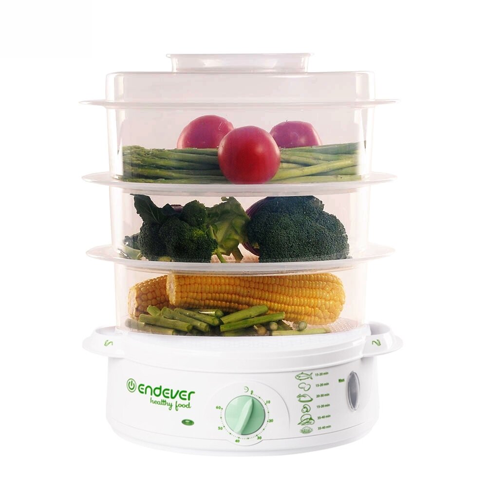 Благодаря электрической пароварке Endever Vita-175 Вы сможете готовить блюда сразу на трех ярусах, ведь она имеет 3 паровые корзины общей вместимостью 12,8 литра.Мощности пароварки 900 Вт достаточно для быстрого приготовления правильных и полезных блюд сразу на всю семью!Ни для кого не секрет, что еда, приготовленная на пару, намного полезнее чем жареная и запеченная. Именно поэтому такой популярностью пользуются электрические пароварки, данные устройства позволяют в домашних условиях с минимальным затратами труда и без использования масла приготовить по-настоящему вкусные и диетические блюда.С помощью электрической пароварки Vita-175 можно без опасения готовить даже детское питание, ведь все детали Vita-175, находящиеся в прямом контакте с продуктами питания, изготовлены из экологически безопасных материалов, именно поэтому продукты не теряют своих вкусовых свойств, и не приобретают посторонних запахов в процессе приготовления.Каждый паровой лоток имеет по 8 специальных углублений для варки яиц на пару. За раз вы можете сварить 24 яйца, при этом, яйца не будут трескаться, как при варке в кастрюле с водой.Так же в комплектацию устройства включена специальная емкость для приготовления круп. Теперь Вы сможете получить идеально проваренный и рассыпчатый рис и прочие крупы в качестве гарнира, приготовив его одновременно с основным блюдом, экономя место на кухне, и значительно сокращая количество грязной посуды, которую потребуется вымыть по завершении приготовления.Управлять устройством просто и удобно, с помощью механического таймера Вы можете установить время приготовления (до 60 минут), по завершении которого пароварка автоматически отключится. Об отключении устройства будет свидетельствовать звуковой сигнал.Для сбора сока и конденсата, образующегося в процессе приготовления продуктов, в конструкции устройства предусмотрен специальный поддон, благодаря чему запахи различных блюд не будут смешиваться. Во время процесса готовки, когда жидкость переходит в парообразное состояние, происходит уменьшение ее объёма, из-за чего может потребоваться периодически контролировать её количество в резервуаре. Для этих целей пароварка оснащена окошком для индикации уровня воды, доливать которую в специальную емкость (объемом 1 литр) теперь возможно не прерывая рабочий процесс, через специальные боковые отверстия в поддоне.Благодаря двойной системе защиты от перегрева пароварка Endever является абсолютно безопасным устройством, не нуждающимся в постоянном пристальном контроле. Вы можете запустить процесс приготовления и заниматься своими делами. По истечении заданного времени, или выкипании воды устройство произведет автоматическое отключение.Здоровое питание в домашних условиях без затрат времени и сил – все это новая пароварка Vita-175 от Endever!