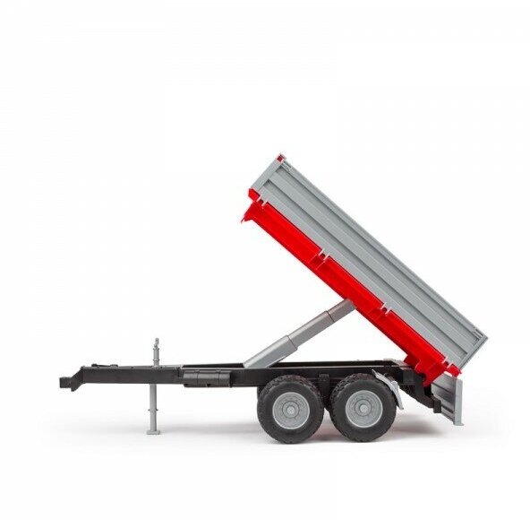 В данной модели открываются три борта, а также поднимается сам кузов для быстрой разгрузки. Подвеска отрабатывает неровности поверхности как настоящий прицеп. Передняя часть оборудована специальным креплением для транспортировки, задняя часть оборудована прицепным для прицепов. Колеса данного прицепа оборудованы мягким протектором, сделает игры вашего малыша тише, и безопаснее для различных поверхностей.
