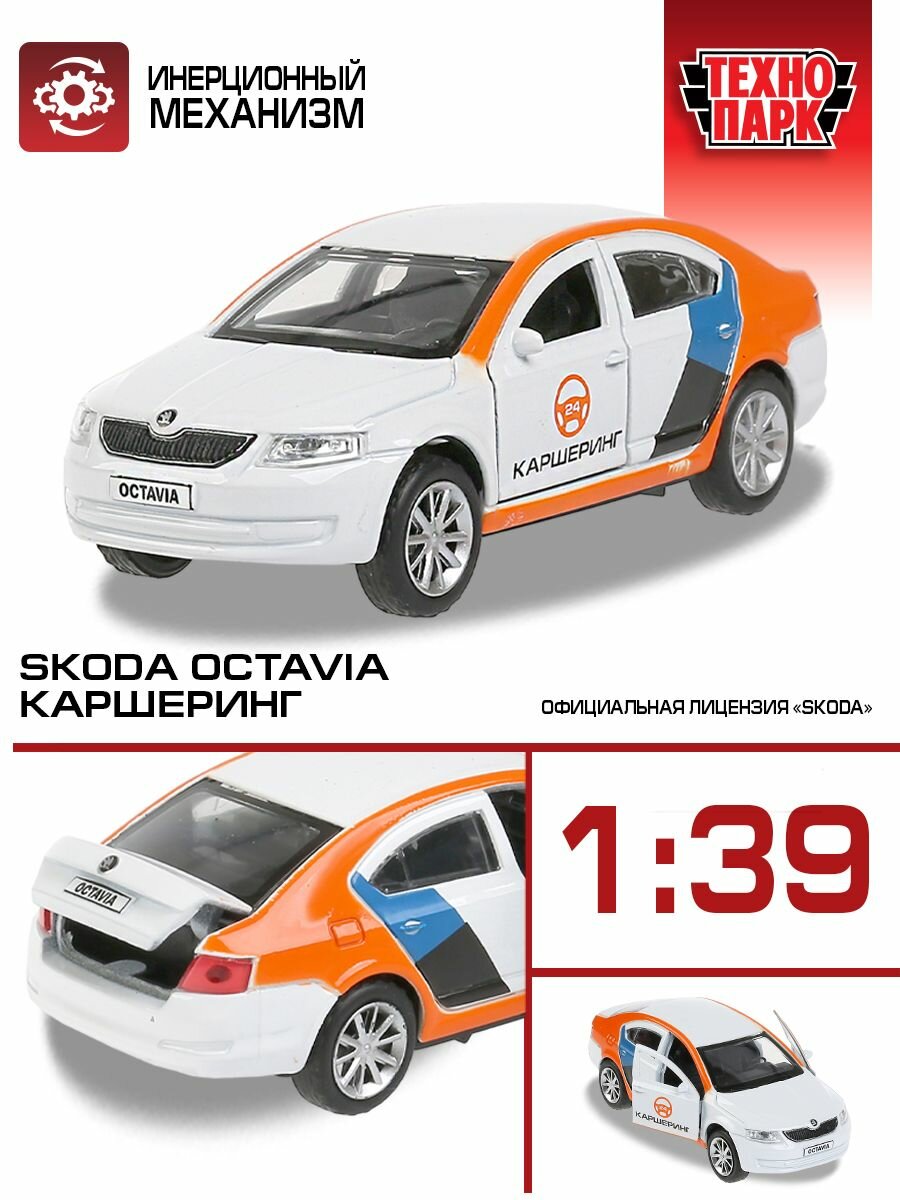 Металлическая инерционная модель «Skoda Octavia каршеринг» ТМ «Технопарк» станет отличным подарком для ребёнка: