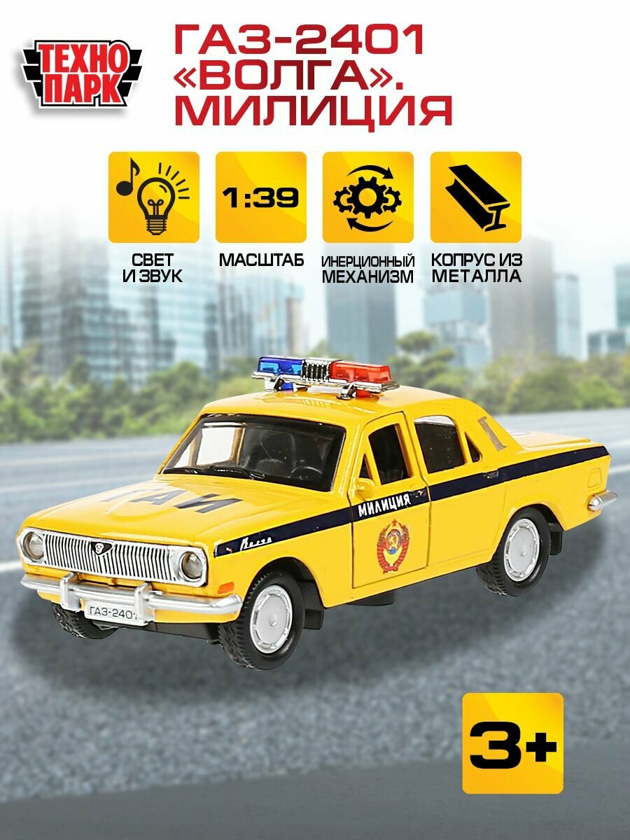 - Машина ГАЗ-2401 Волга ТЕХНОПАРК Милиция инерционная с 3лет