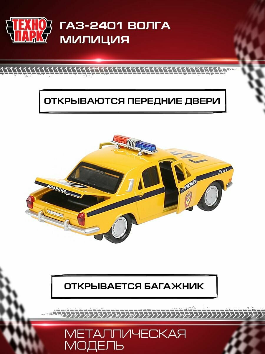 - Металлическая инерционная машинка "ГАЗ-2401 Волга. Милиция. ГАИ" РУССКАЯ коллекция от ТМ "Технопарк"