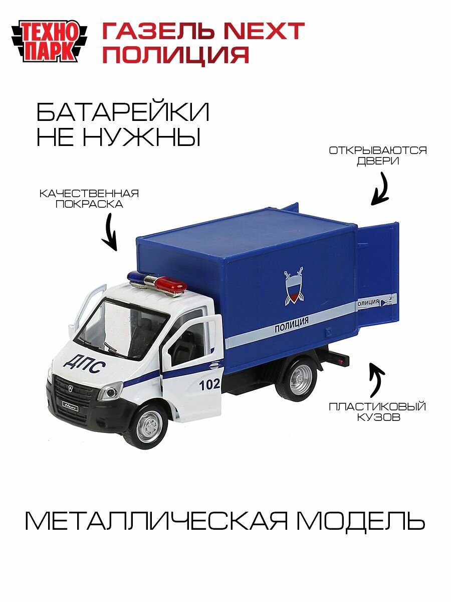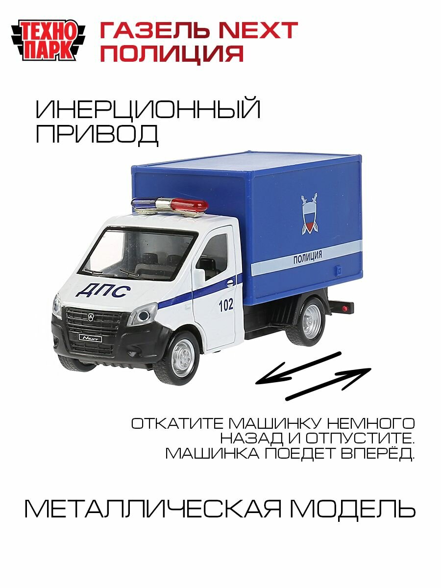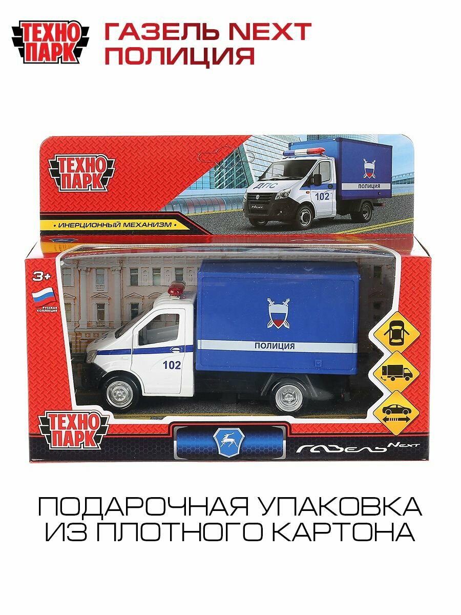 Металлическая инерционная модель «ГАЗель Next. Полиция» ТМ «Технопарк» станет отличным подарком для ребёнка: