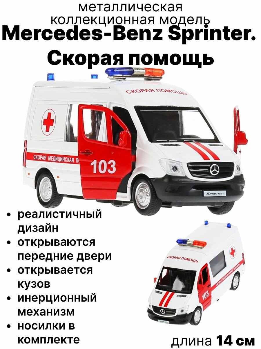 Модель: Машина металлическая Mercedes-Benz Sprinter Скорая помощь 14 см
