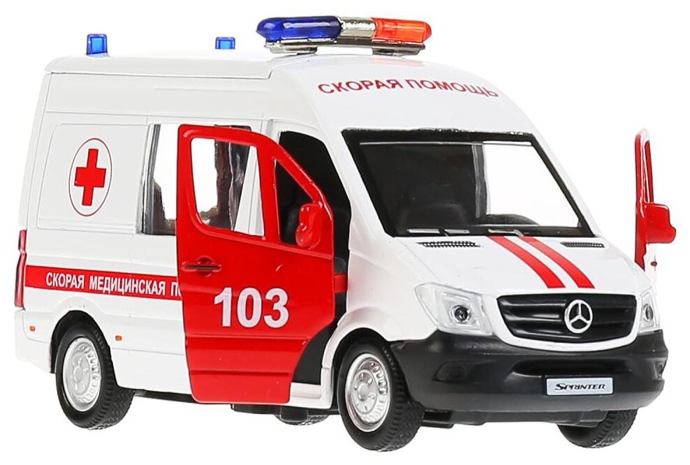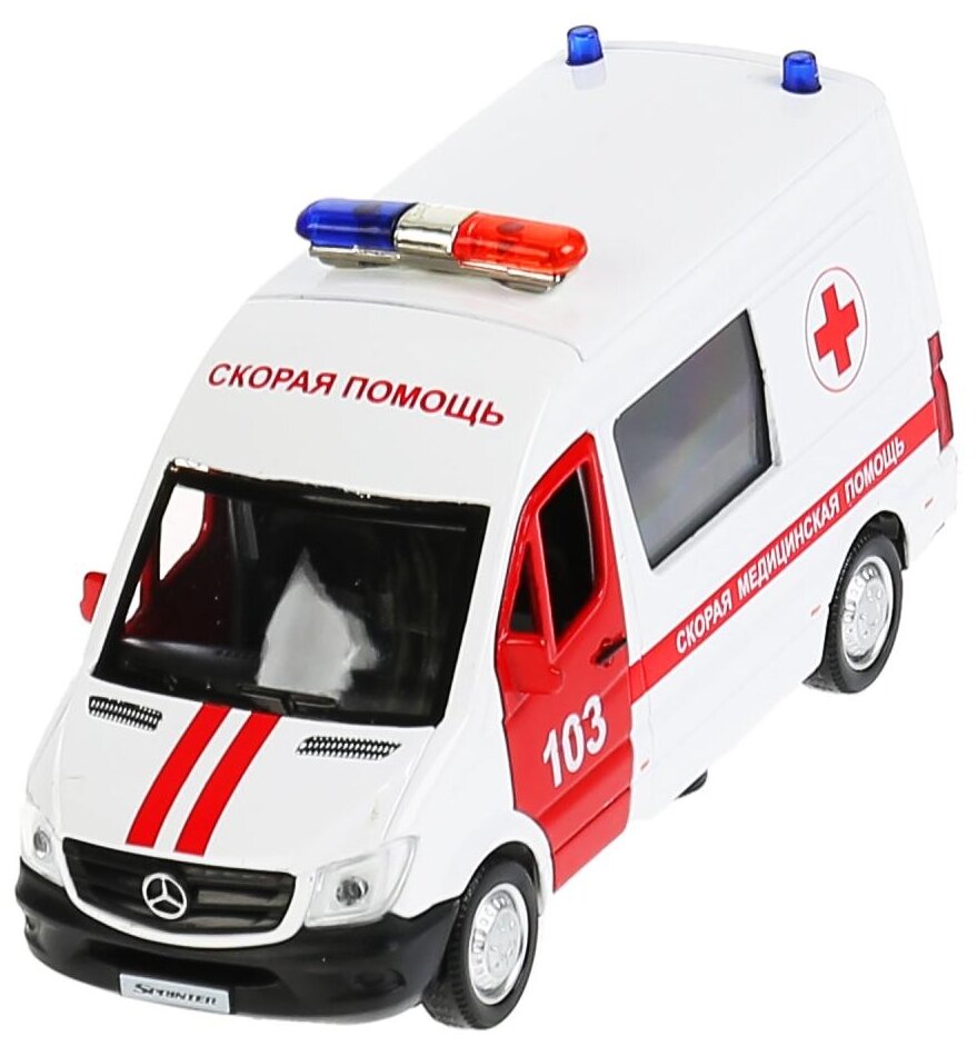 Металлическая инерционная модель «Mercedes-Benz Sprinter. Скорая помощь» ТМ «Технопарк» станет отличной игрушкой для ребёнка: