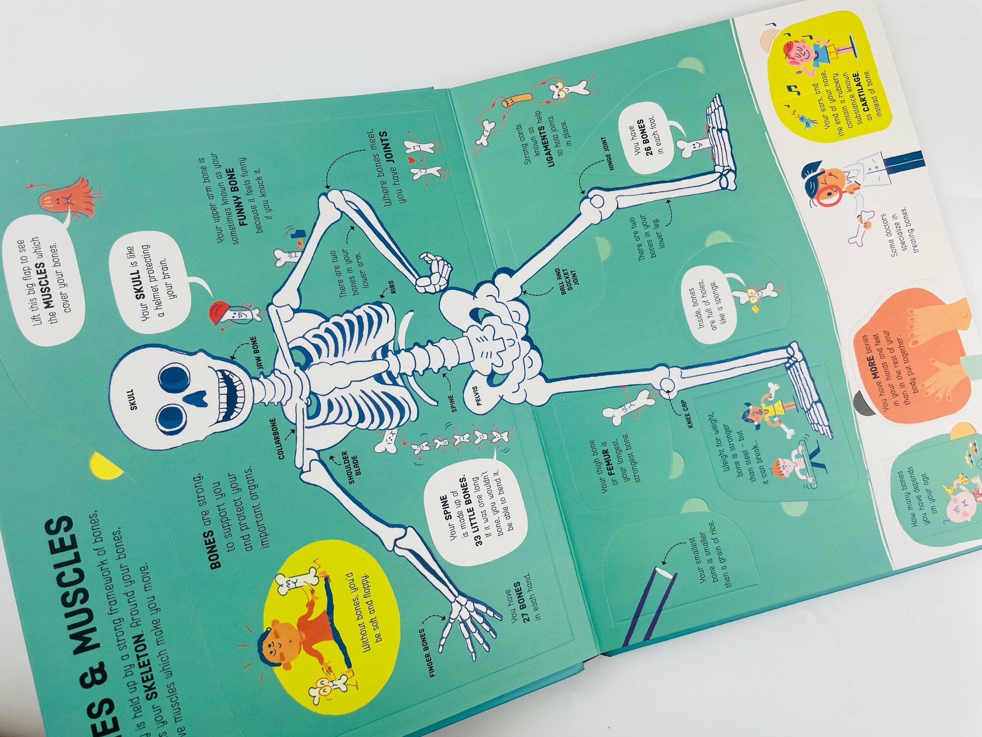 Замечательная энциклопедия о нашем теле. Очень просто и в тоже время познавательно. Милейшие иллюстрации, забавные аналогии и множество открывающихся створок - отличный вариант, как объяснить ребёнку сложные процессы в нашем организме без страшных анатомических подробностей. Тут кровяные тельца изображены в форме машинок, а лейкоциты полицейскими машинками, которые ловят вирусы. Таким образом изучение превращается в игру. Подойдёт на возраст от 4-х лет примерно. Рекомендую!