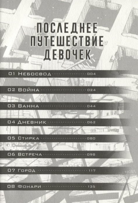 Интересный релиз от "Реанимедии". Путешествие двух подруг по мертвому (умирающему?) миру после войны. Огромный пустой город, где на удачу героини встречают таких же потерянных. Это только начало манги, но пока остаются одни лишь вопросы: что произошло с цивилизацией? куда пропали люди?