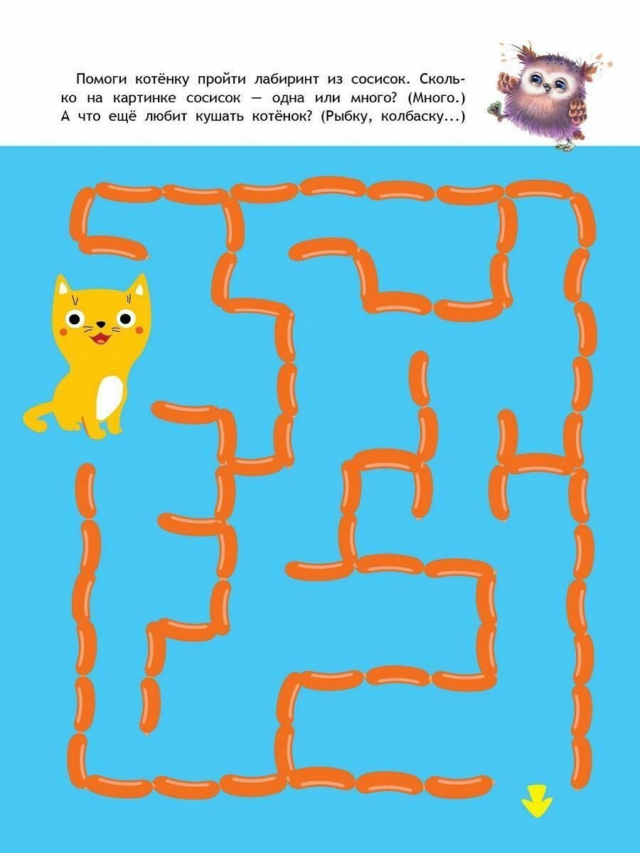 Прежде, чем нарисовать дорожку в лабиринте, предложите малышу найти её и отследить глазками, потом провести дорожку пальчиком, и лишь потом нарисовать дорожку карандашом. Мы рекомендуем вам использовать мягкий простой карандаш, чтобы дорожку можно было легко стереть в случае ошибки.